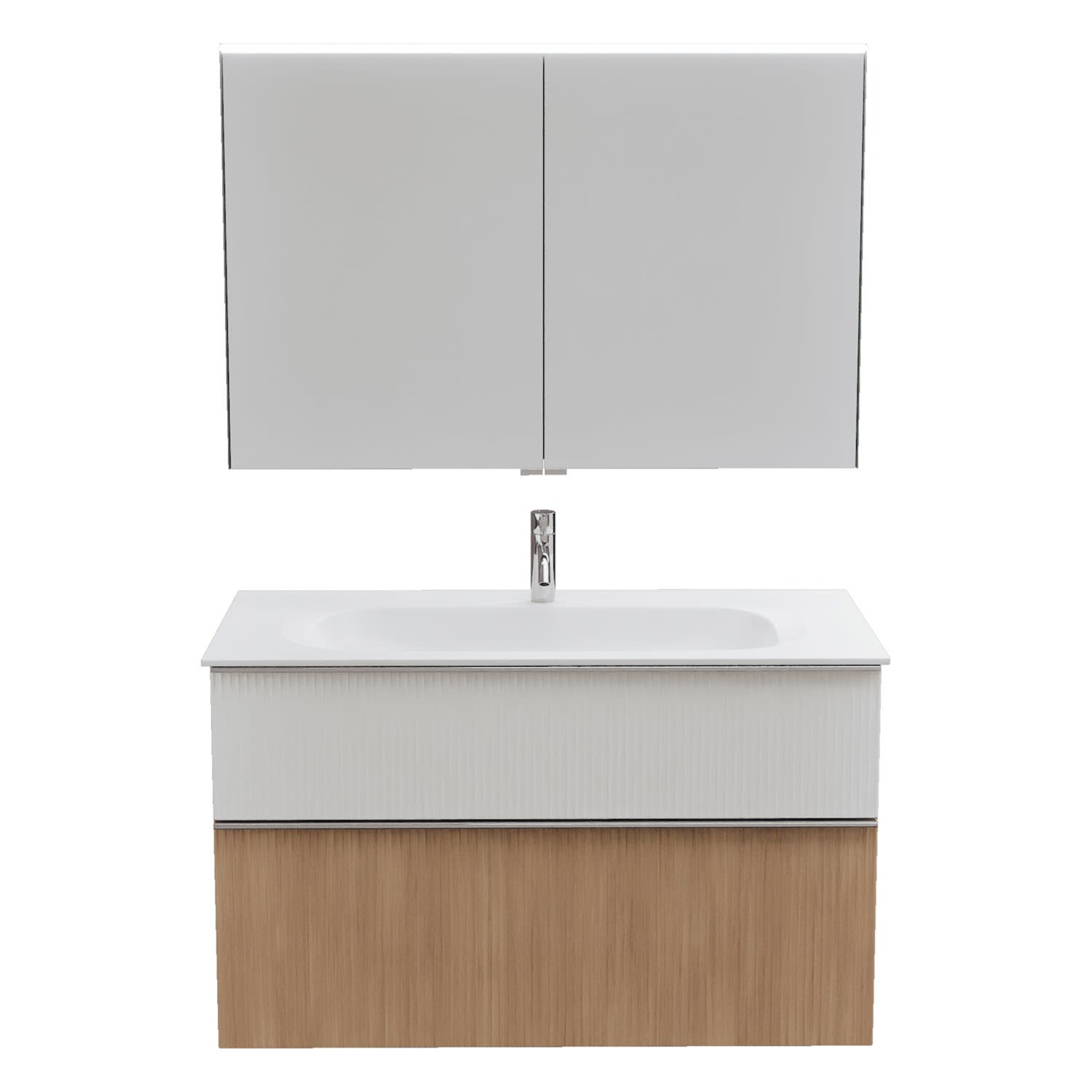 burgbad Fiumo 2.0 Badmöbelset 102 cm mit Waschtisch mit Unterschrank mit Griff G0146 und Spiegelschrank