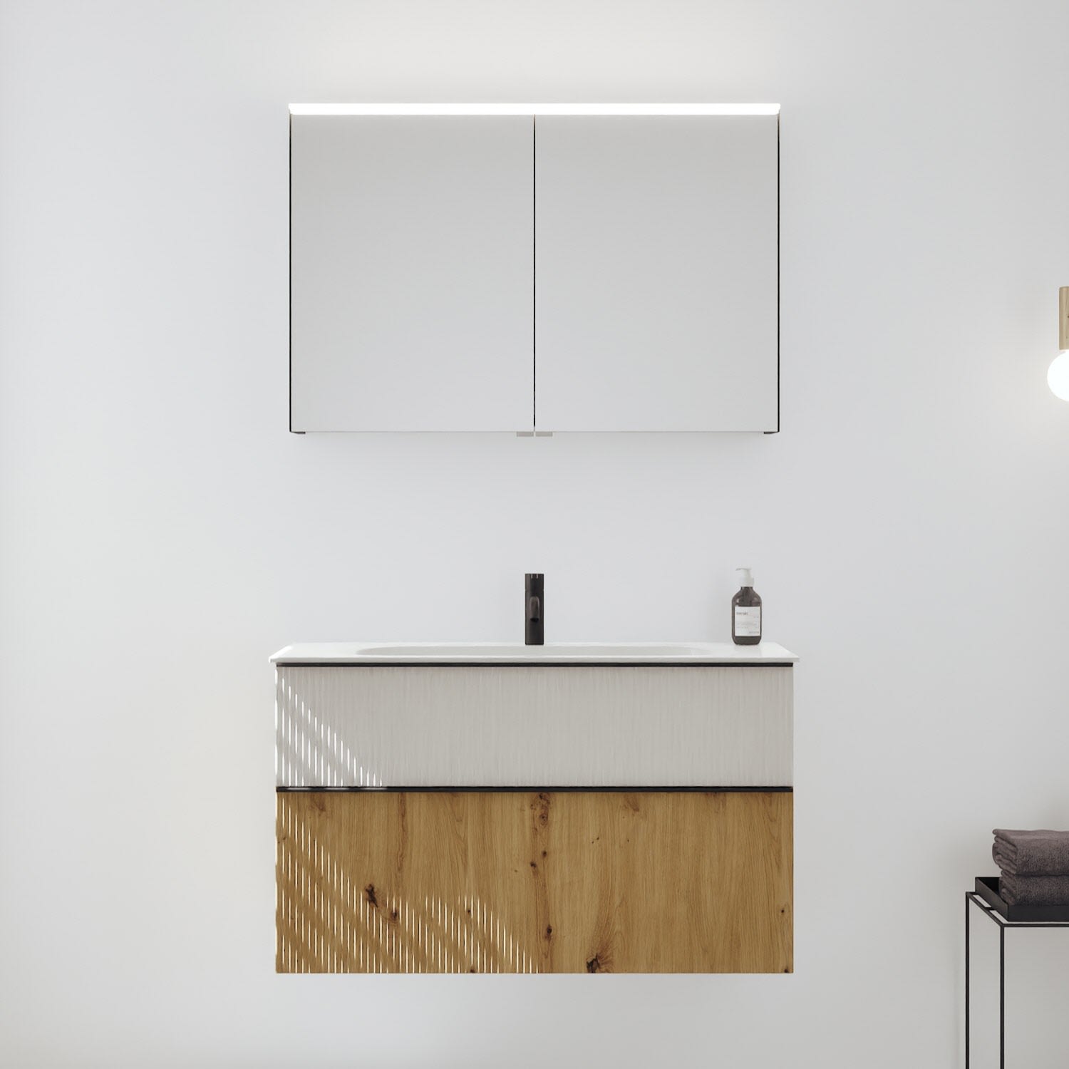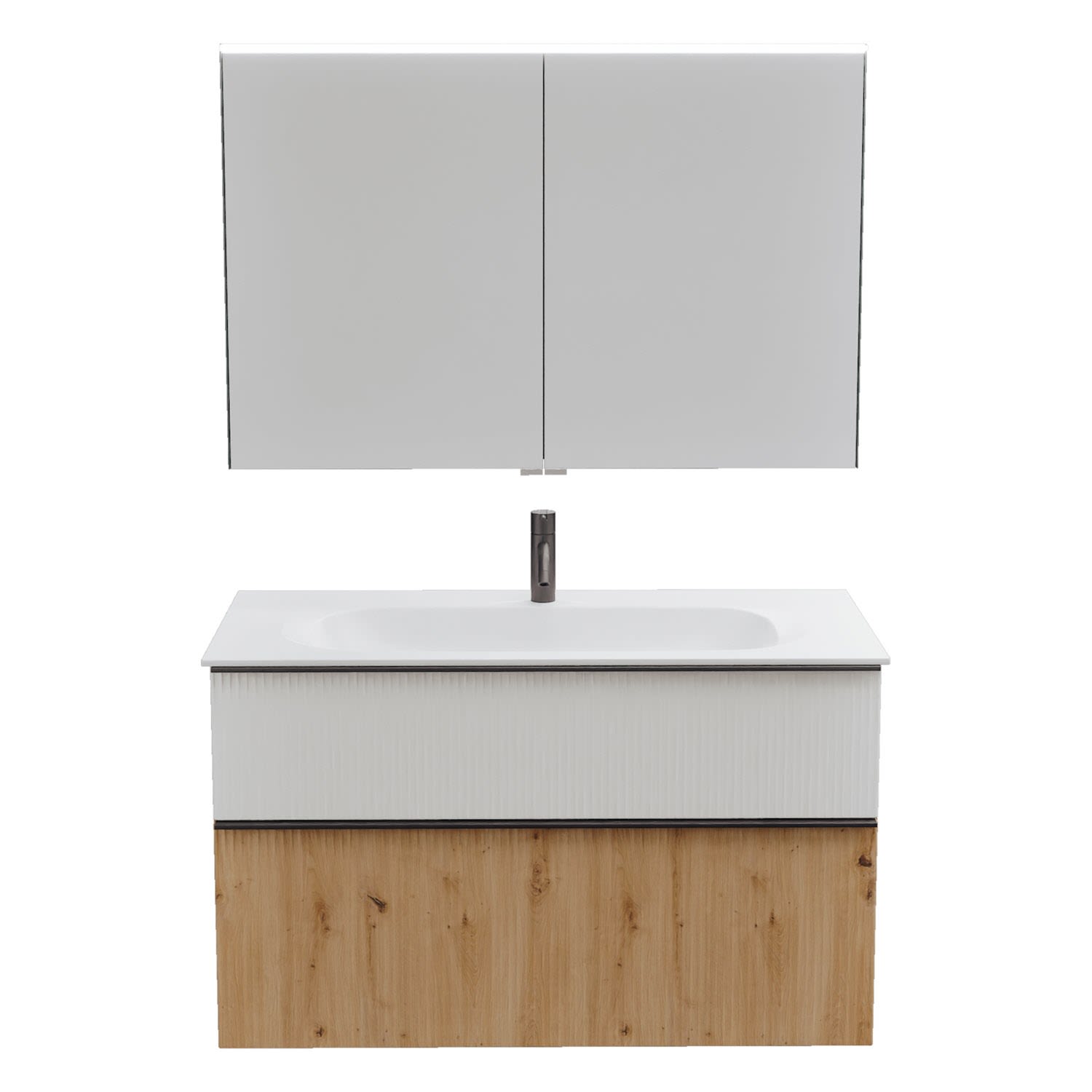 burgbad Fiumo 2.0 Badmöbelset 102 cm mit Waschtisch mit Unterschrank mit Griff G0200 und Spiegelschrank