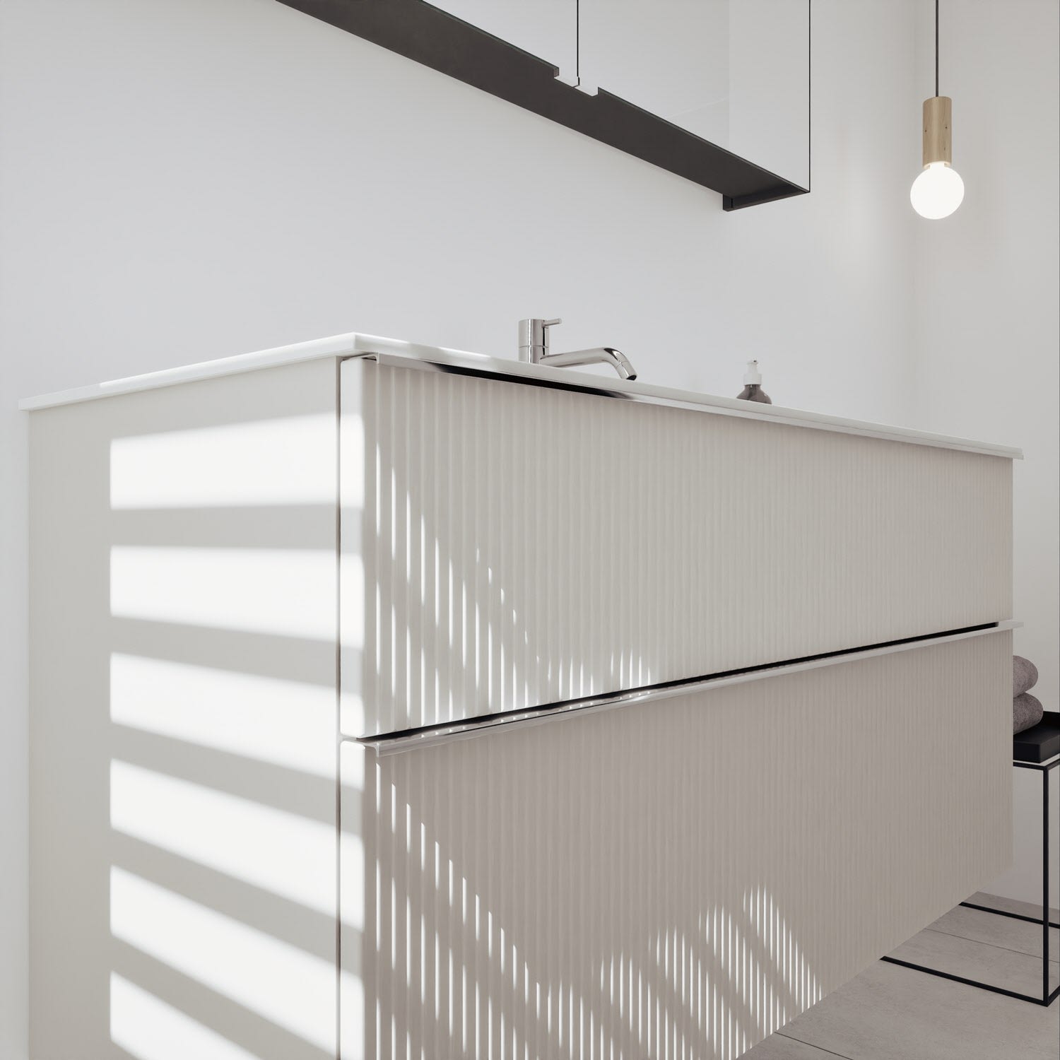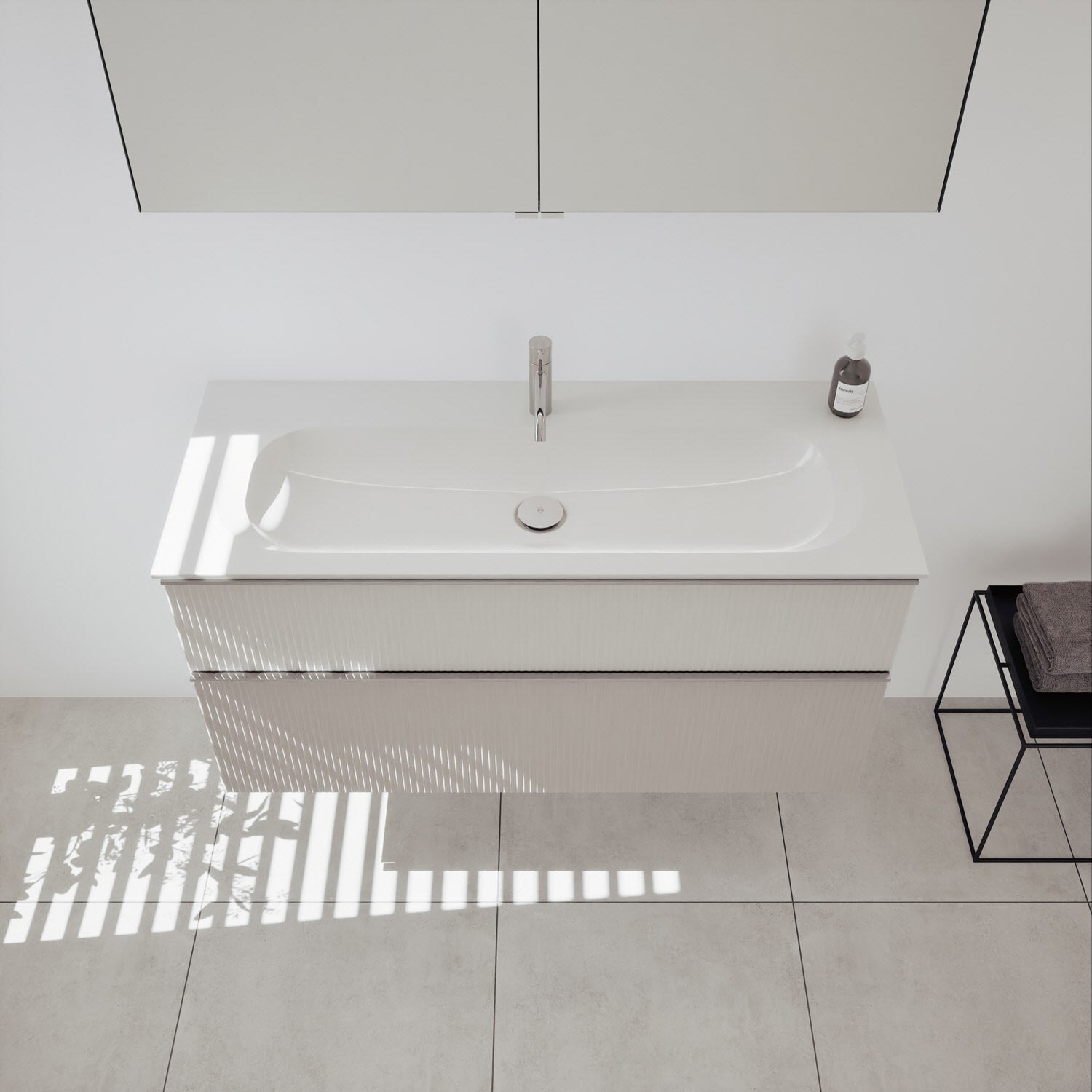 burgbad Fiumo 2.0 Badmöbelset 122 cm mit Waschtisch mit Unterschrank mit Griff G0146 und Spiegelschrank