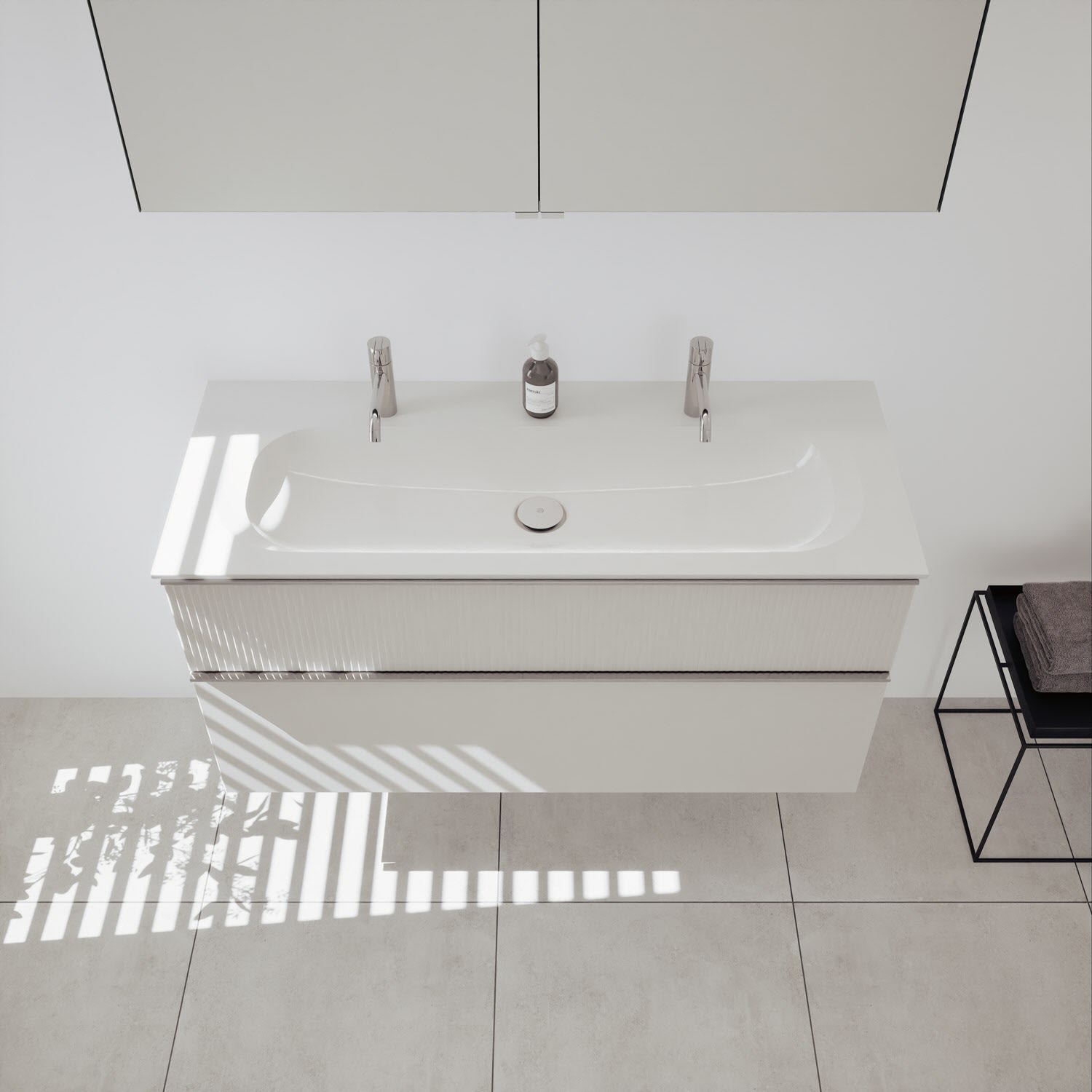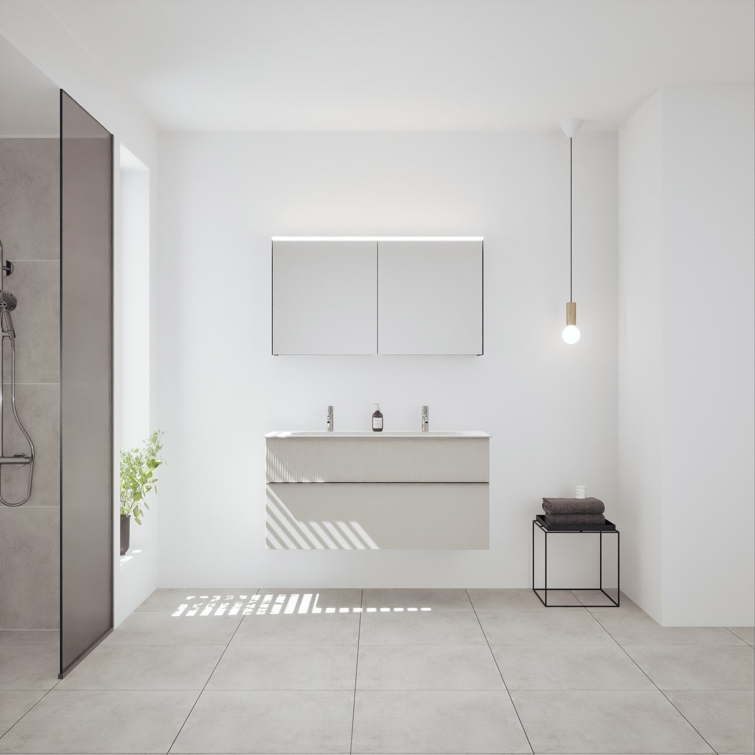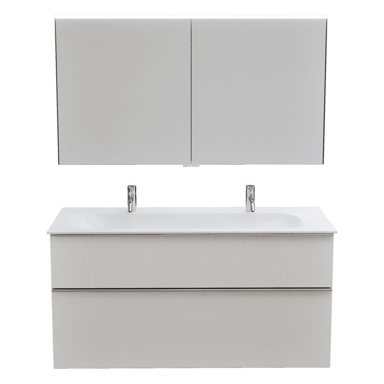 burgbad Fiumo 2.0 Badmöbelset 122 cm mit Waschtisch mit Unterschrank mit Griff G0146 und Spiegelschrank