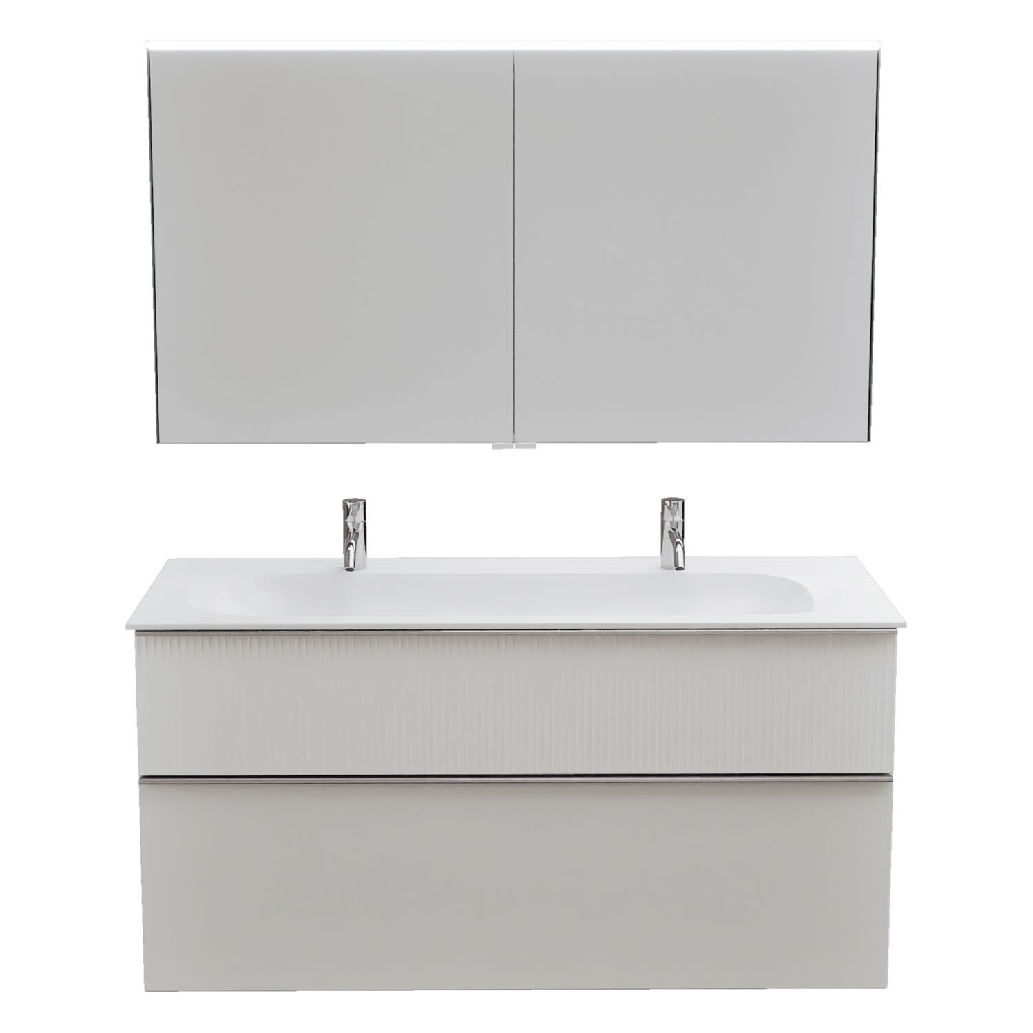 burgbad Fiumo 2.0 Badmöbelset 122 cm mit Waschtisch mit Unterschrank mit Griff G0146 und Spiegelschrank