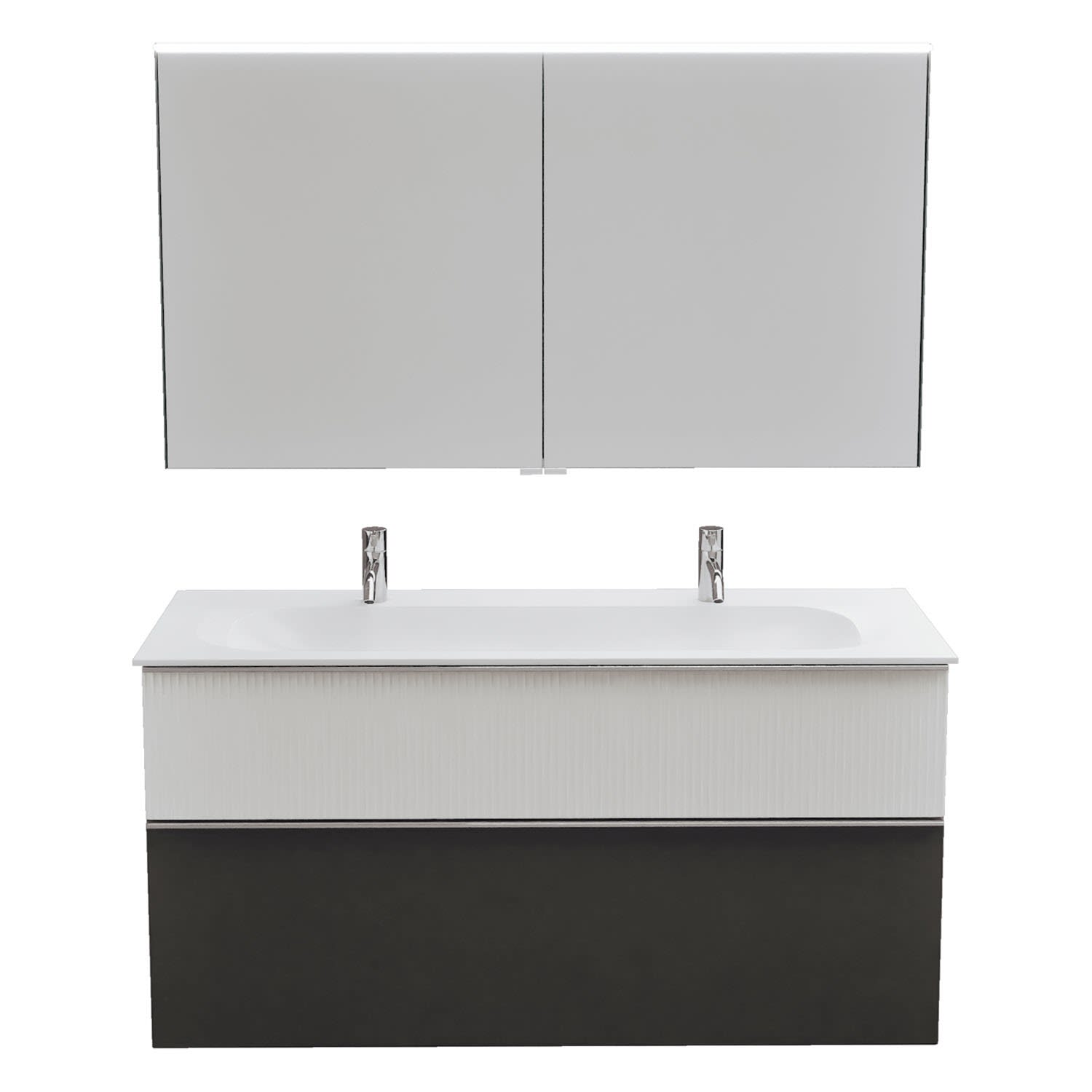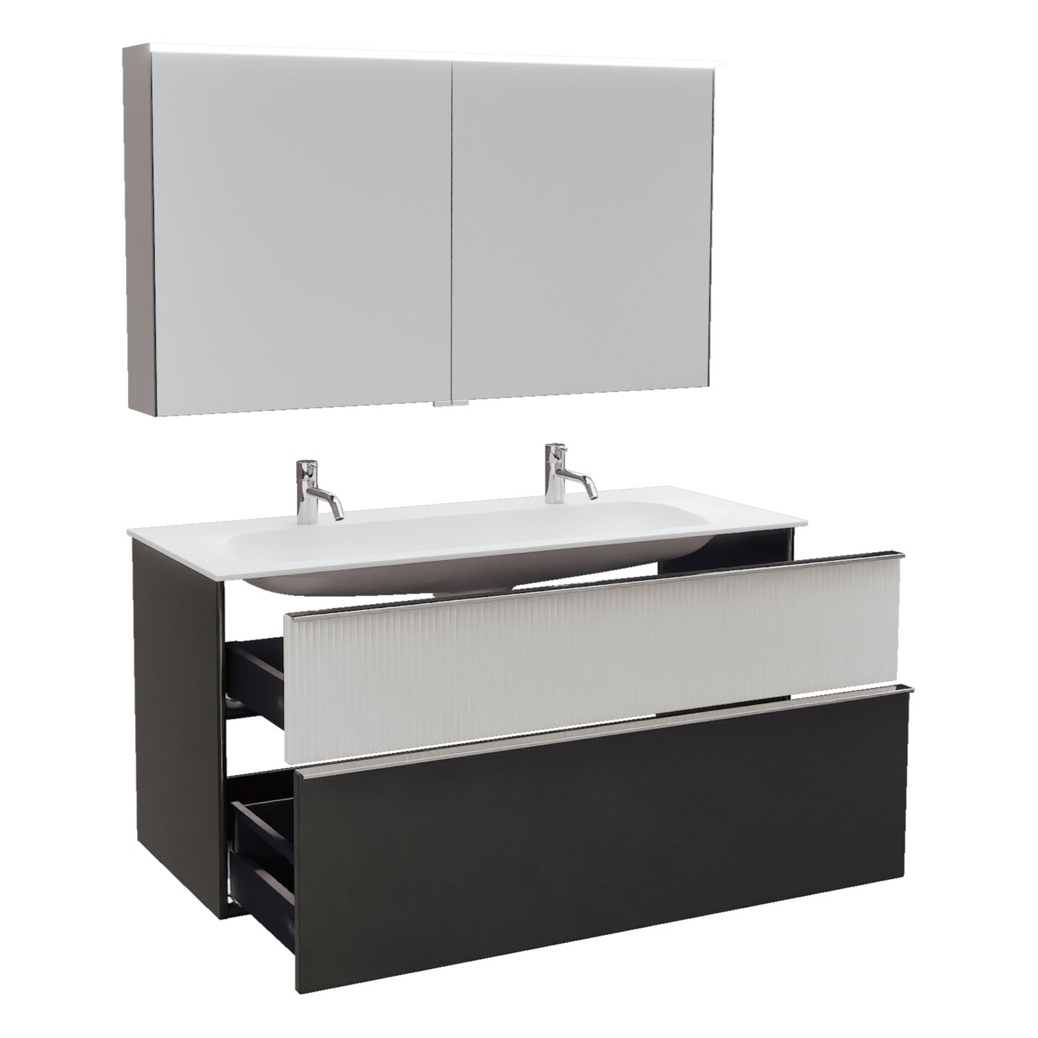burgbad Fiumo 2.0 Badmöbelset 122 cm mit Waschtisch mit Unterschrank mit Griff G0146 und Spiegelschrank
