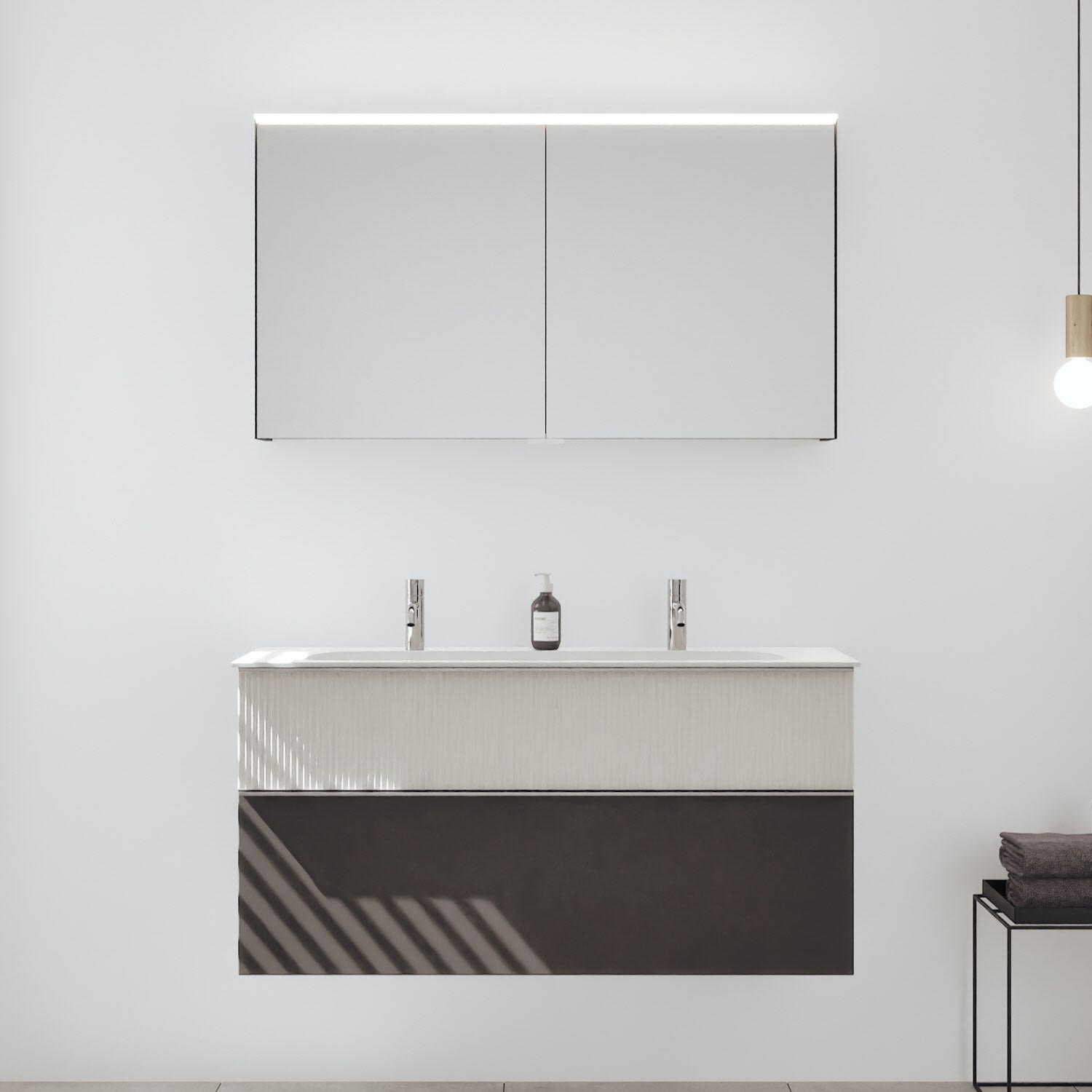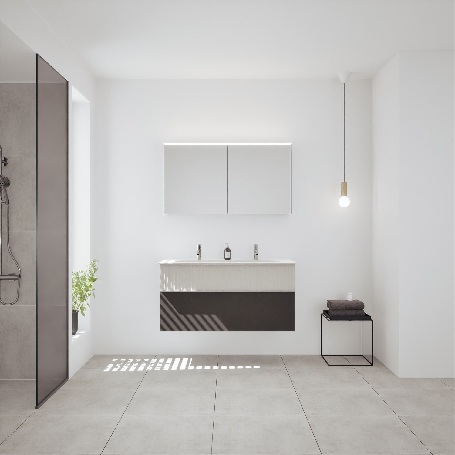 - Spiegelschrank, Waschtischunterschrank, Waschtisch,burgbad cleanFlow, Befestigung außer Stockschrauben