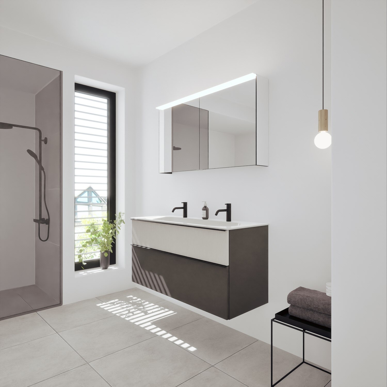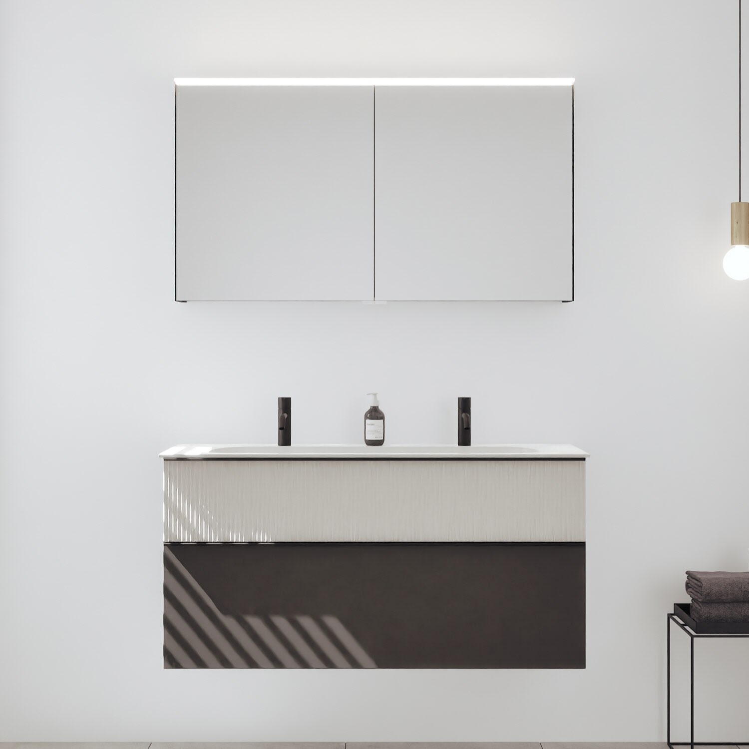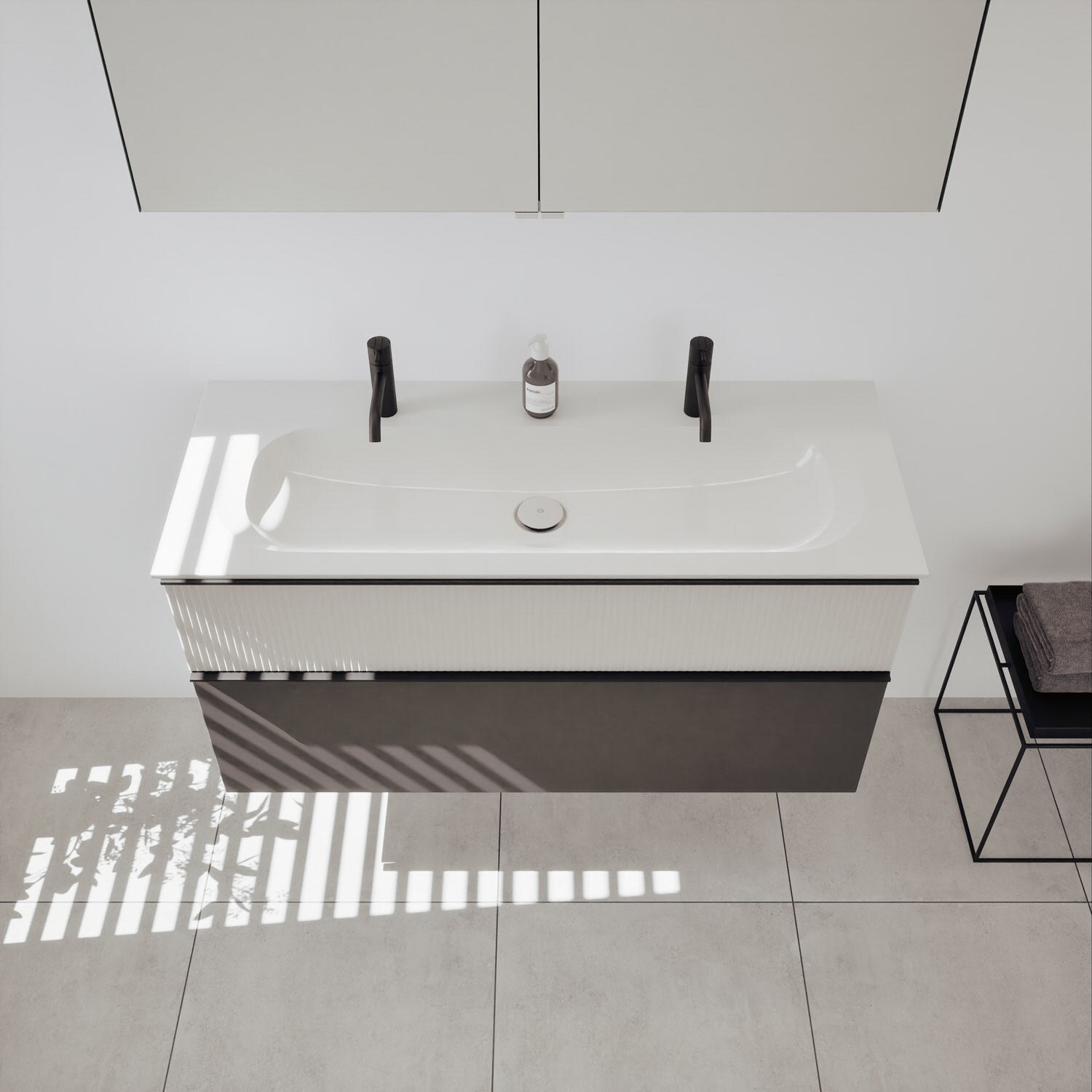 - Spiegelschrank, Waschtischunterschrank, Waschtisch,burgbad cleanFlow, Befestigung außer Stockschrauben