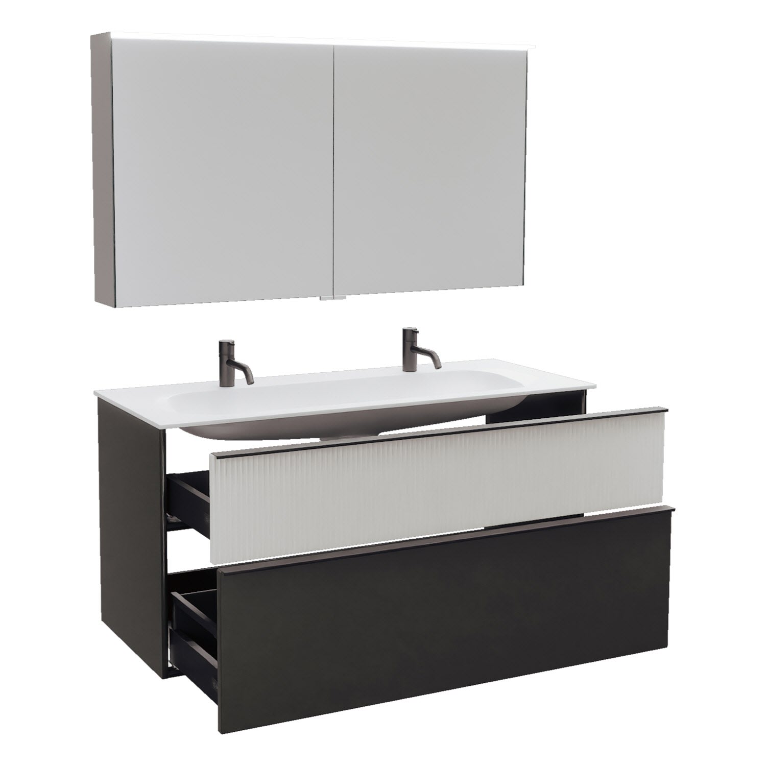 burgbad Fiumo 2.0 Badmöbelset 122 cm mit Waschtisch mit Unterschrank mit Griff G0200 und Spiegelschrank