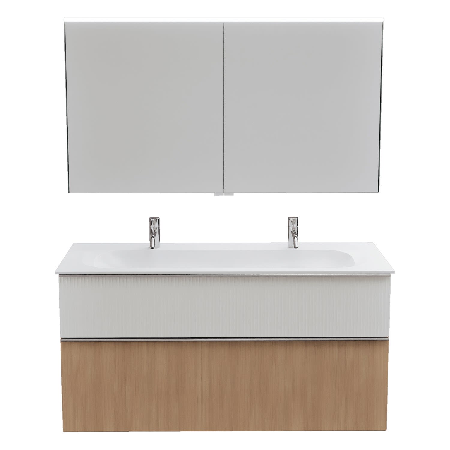 burgbad Fiumo 2.0 Badmöbelset 122 cm mit Waschtisch mit Unterschrank mit Griff G0146 und Spiegelschrank