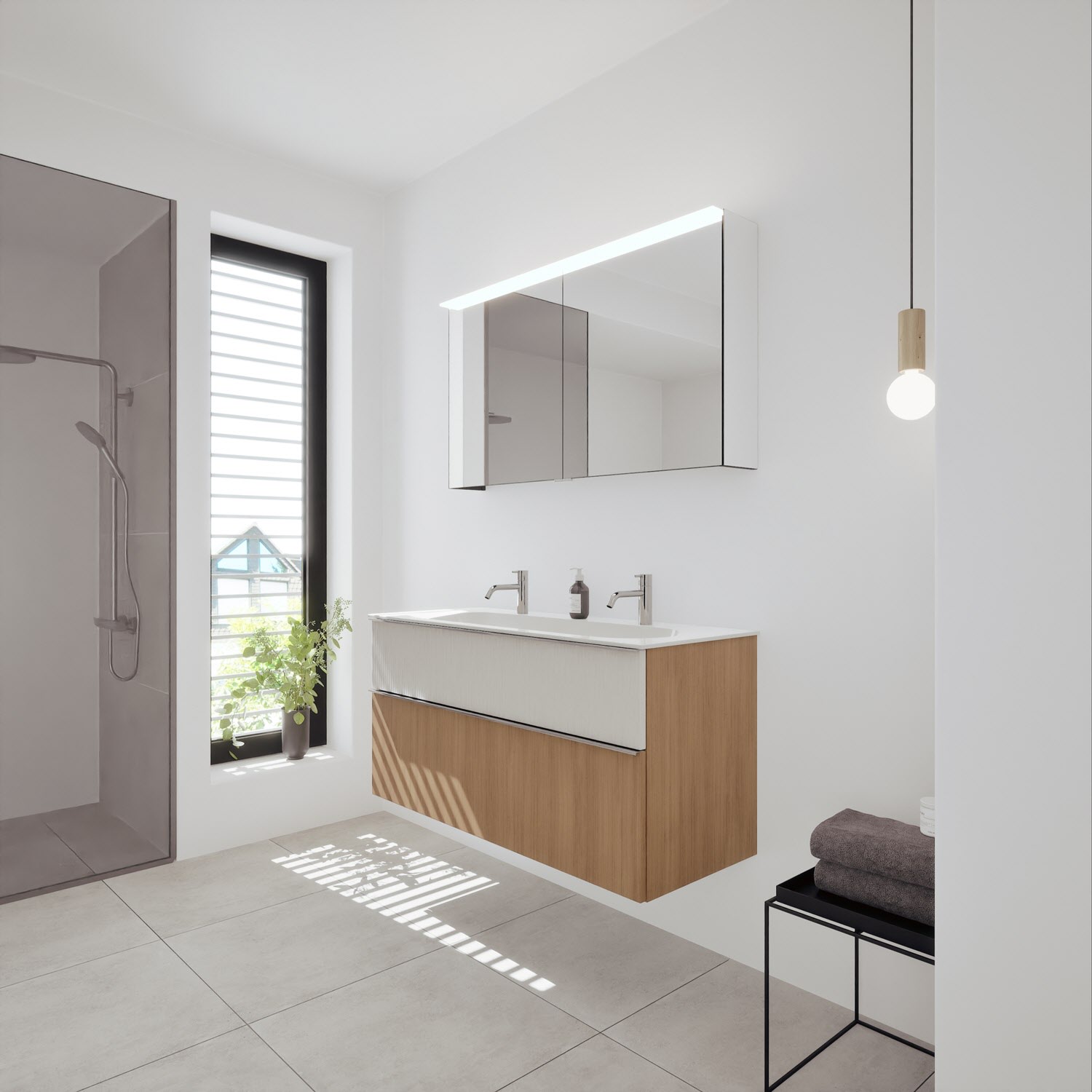 - Spiegelschrank, Waschtischunterschrank, Waschtisch,burgbad cleanFlow, Befestigung außer Stockschrauben