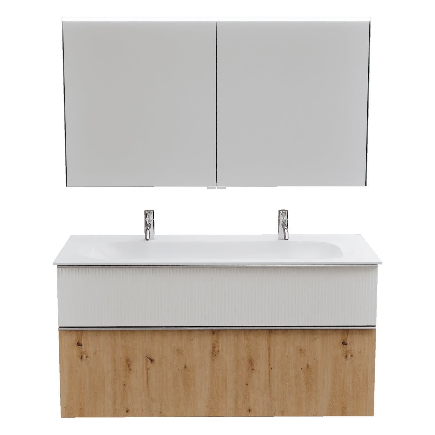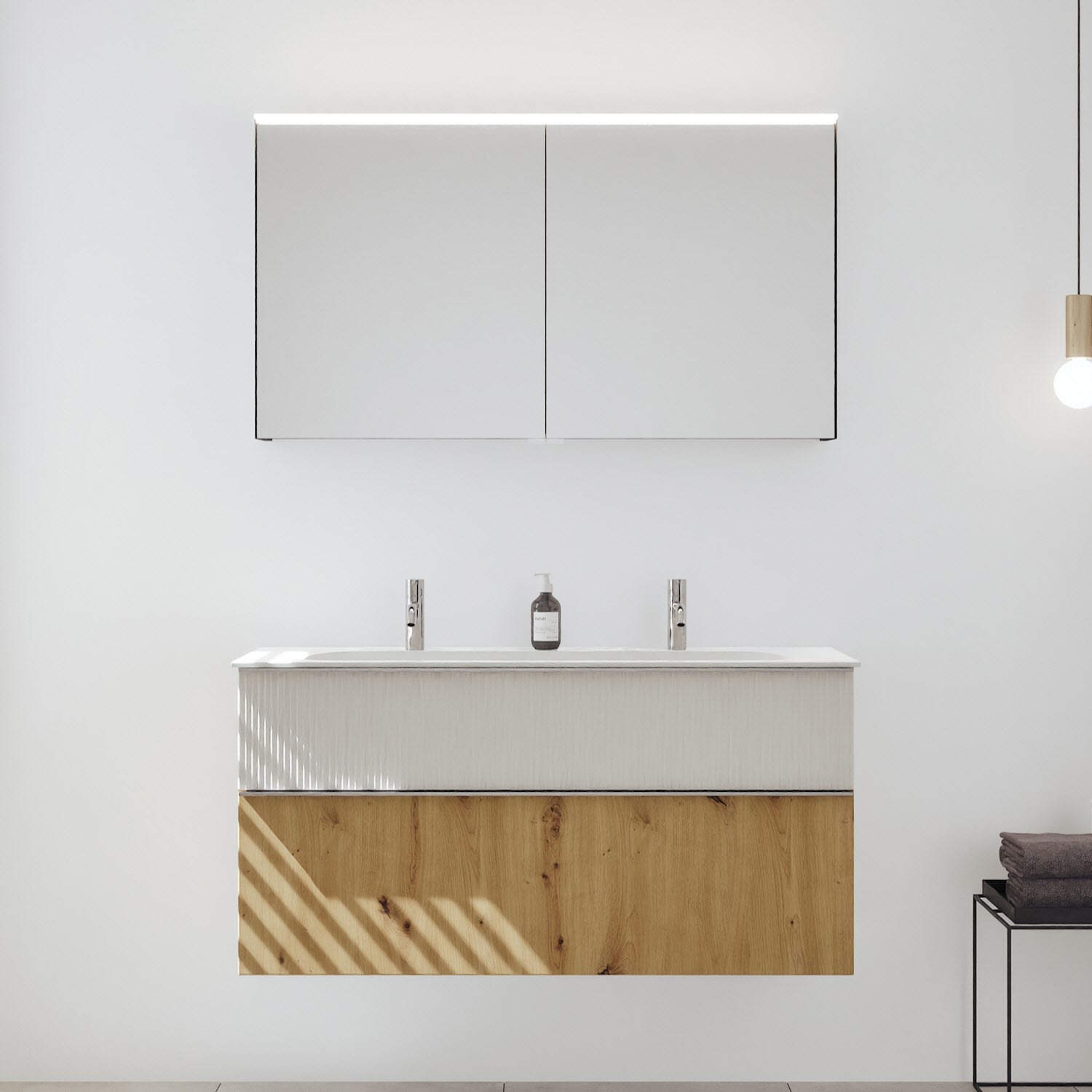 burgbad Fiumo 2.0 Badmöbelset 122 cm mit Waschtisch mit Unterschrank mit Griff G0146 und Spiegelschrank