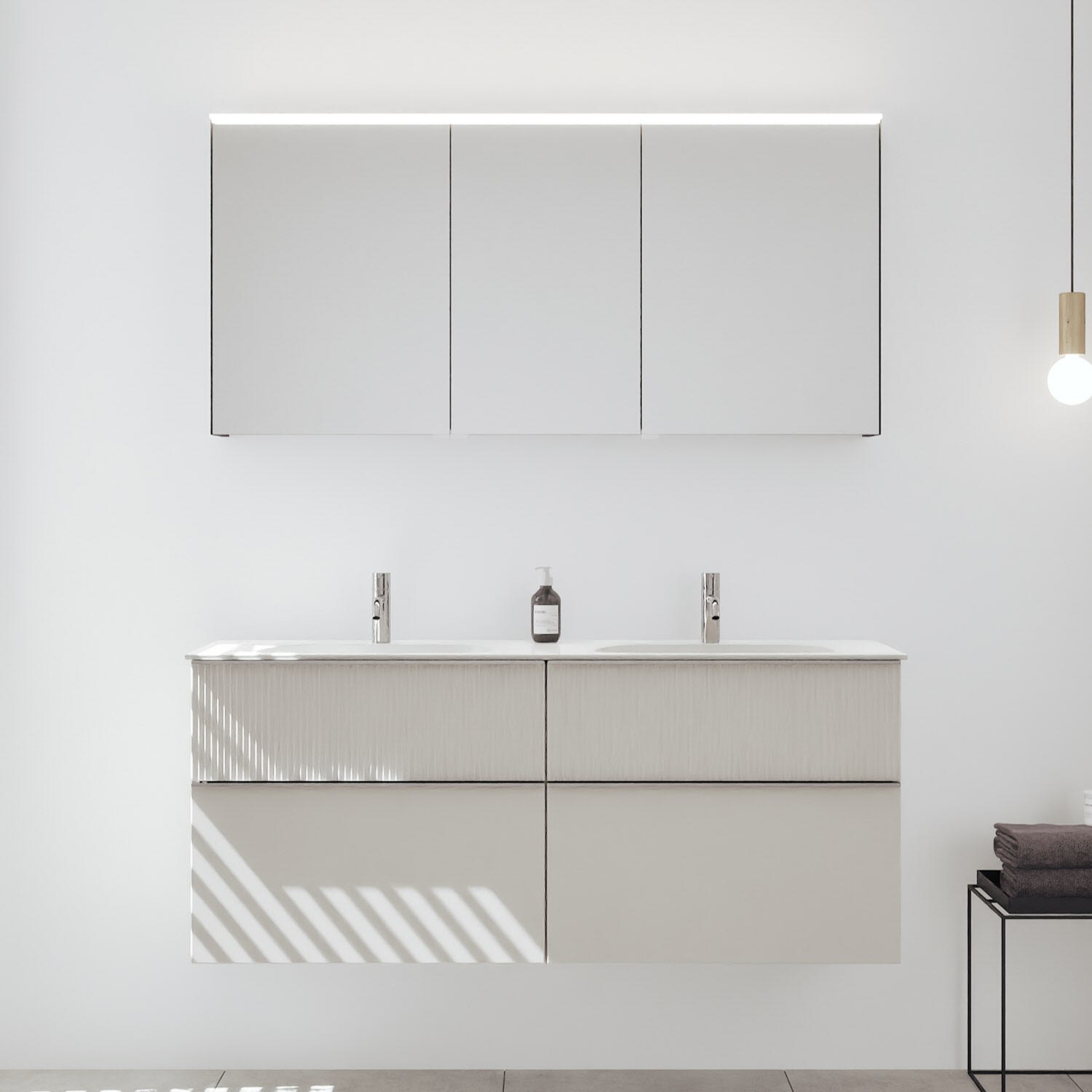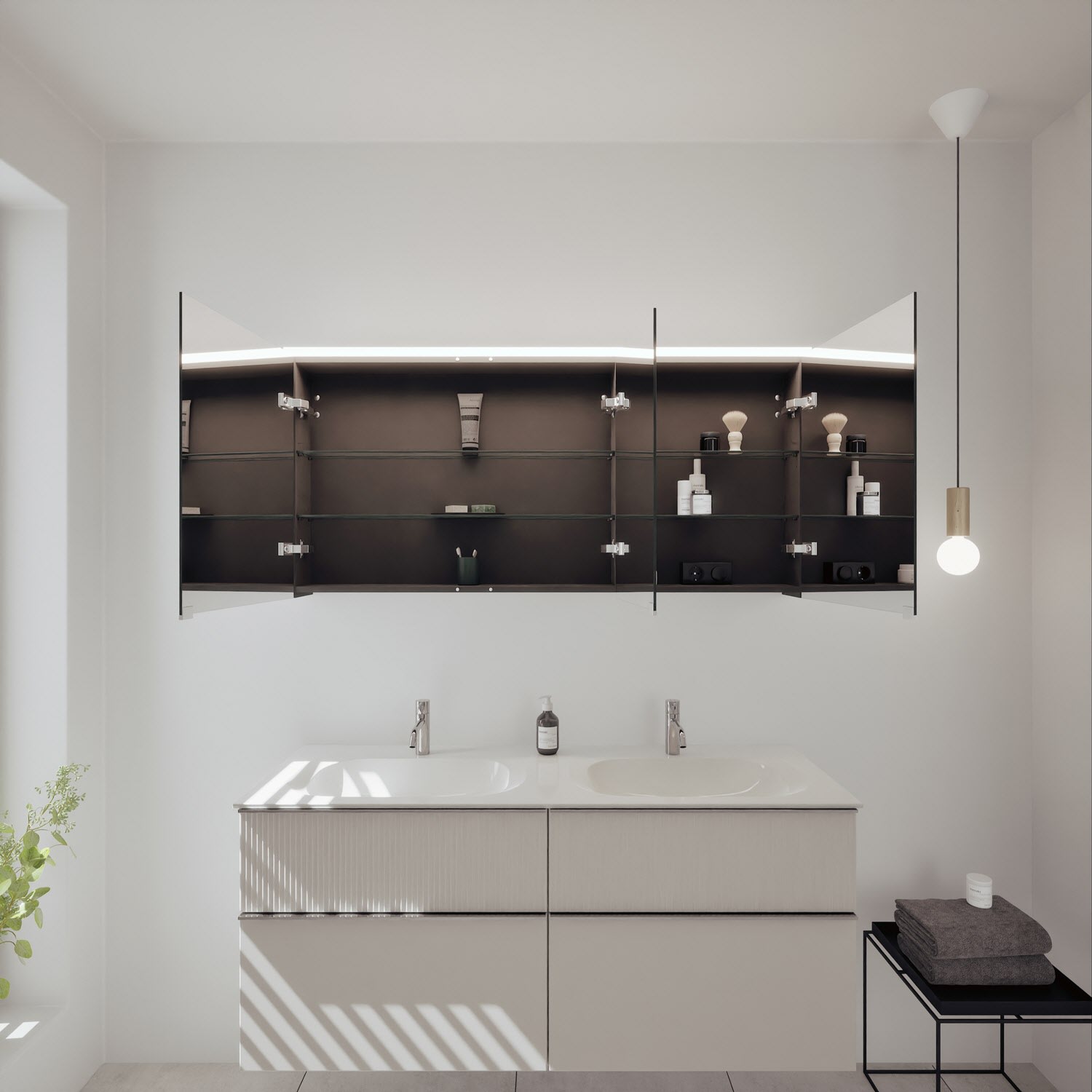 - Spiegelschrank, Waschtischunterschrank, Waschtisch,burgbad cleanFlow, Befestigung außer Stockschrauben