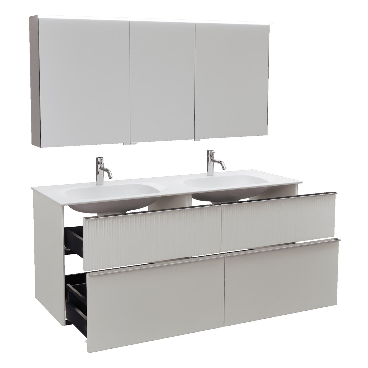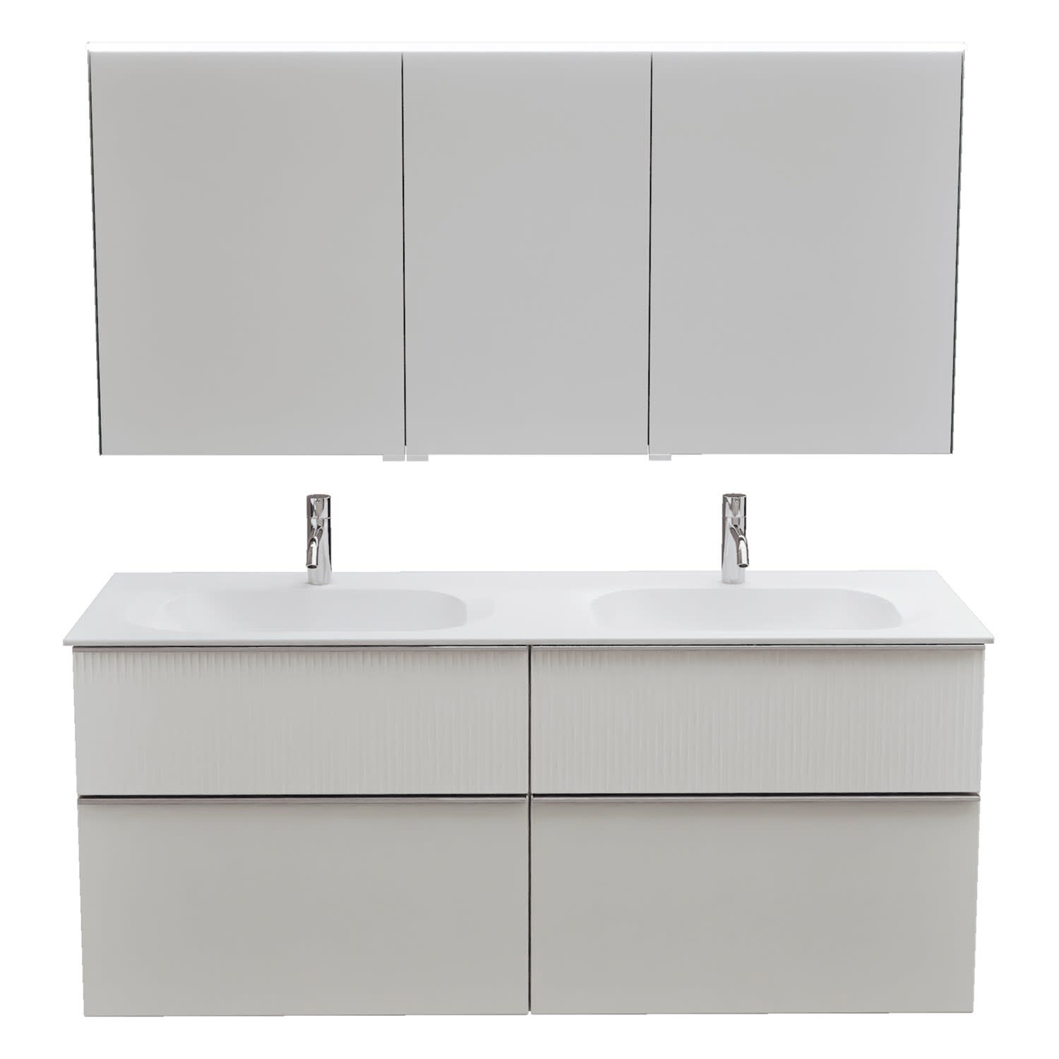 burgbad Fiumo 2.0 Badmöbelset 142 cm mit Waschtisch mit Unterschrank mit Griff G0146 und Spiegelschrank