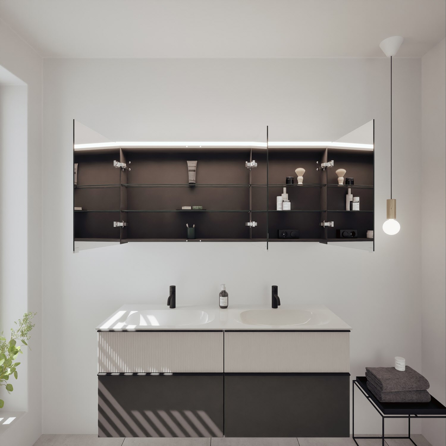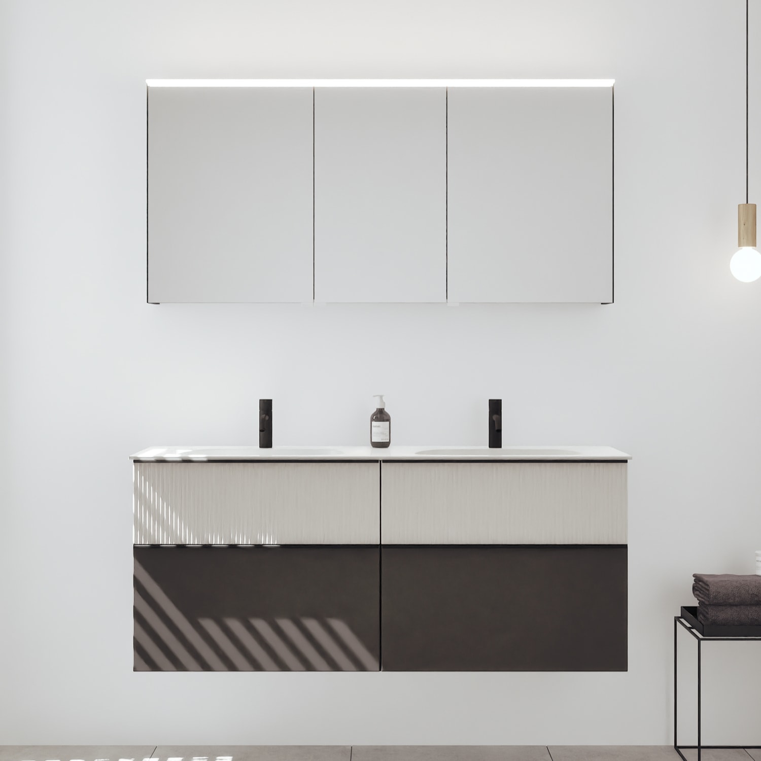 burgbad Fiumo 2.0 Badmöbelset 142 cm mit Waschtisch mit Unterschrank mit Griff G0200 und Spiegelschrank