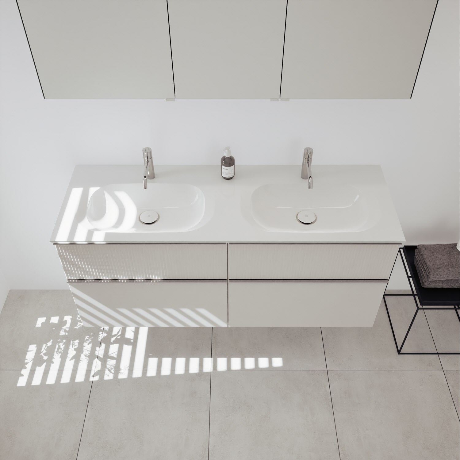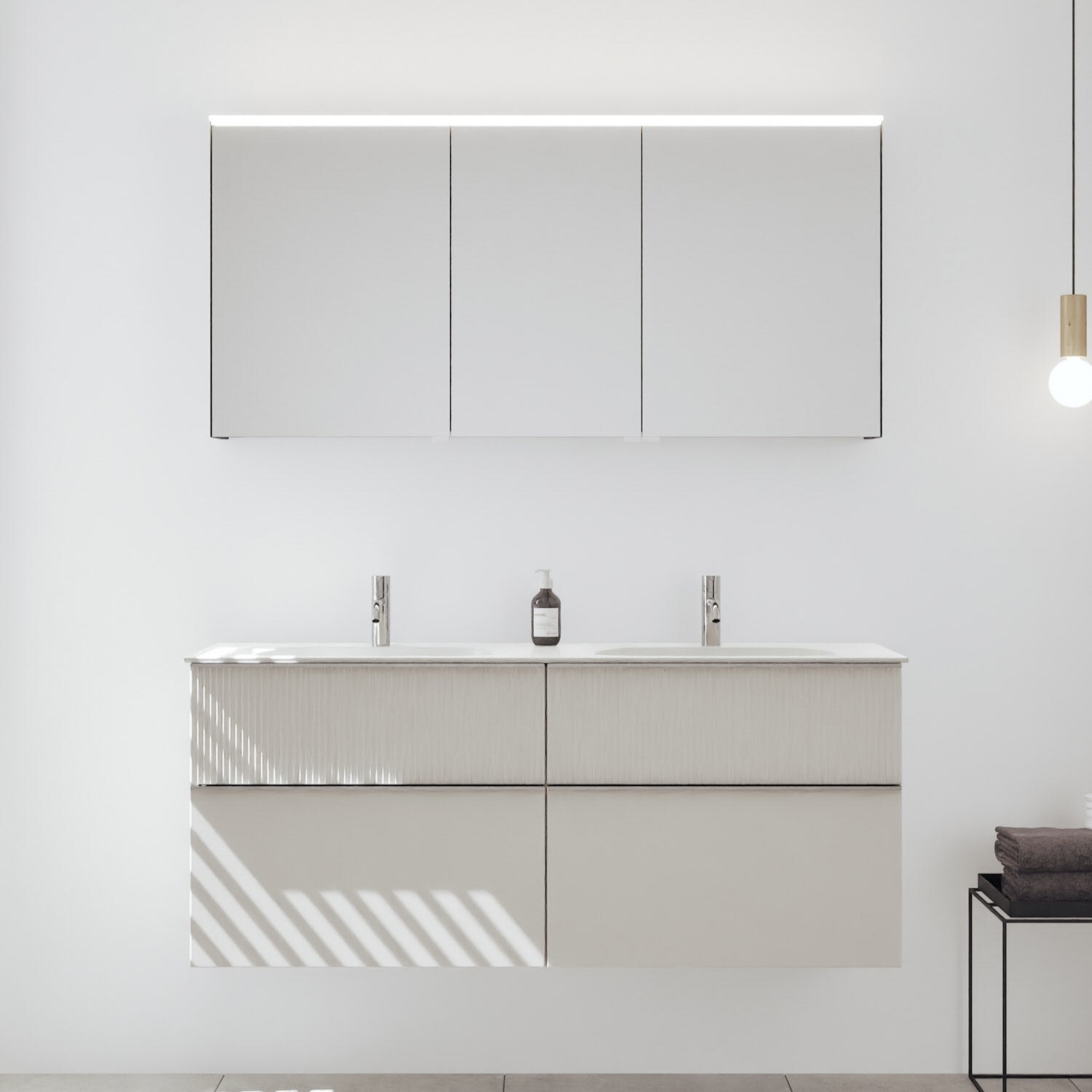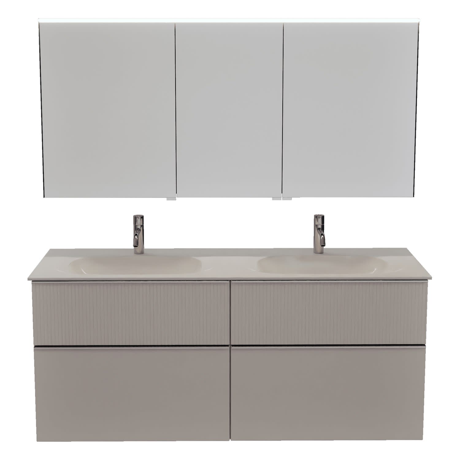 burgbad Fiumo 2.0 Badmöbelset 142 cm mit Waschtisch mit Unterschrank mit Griff G0146 und Spiegelschrank