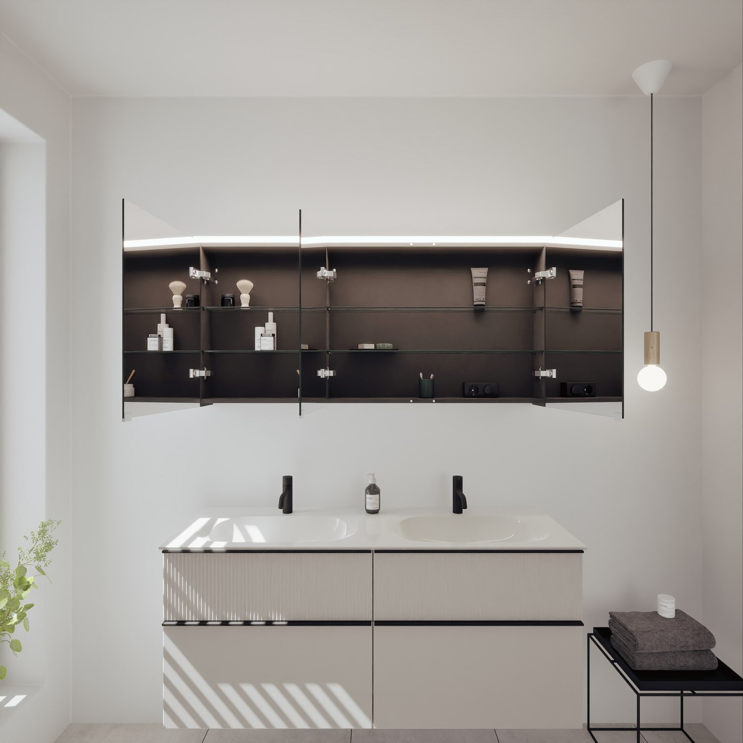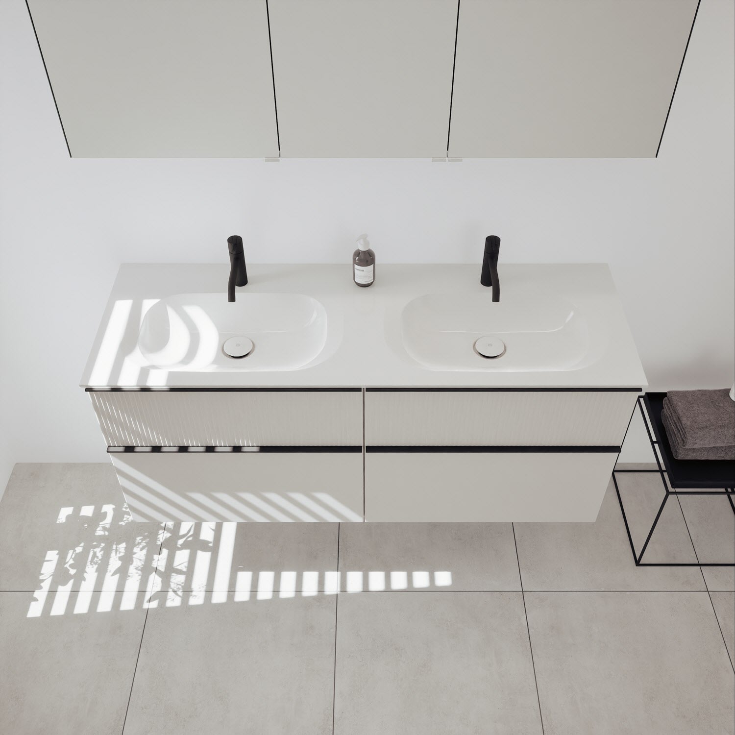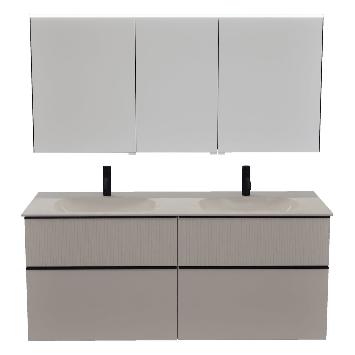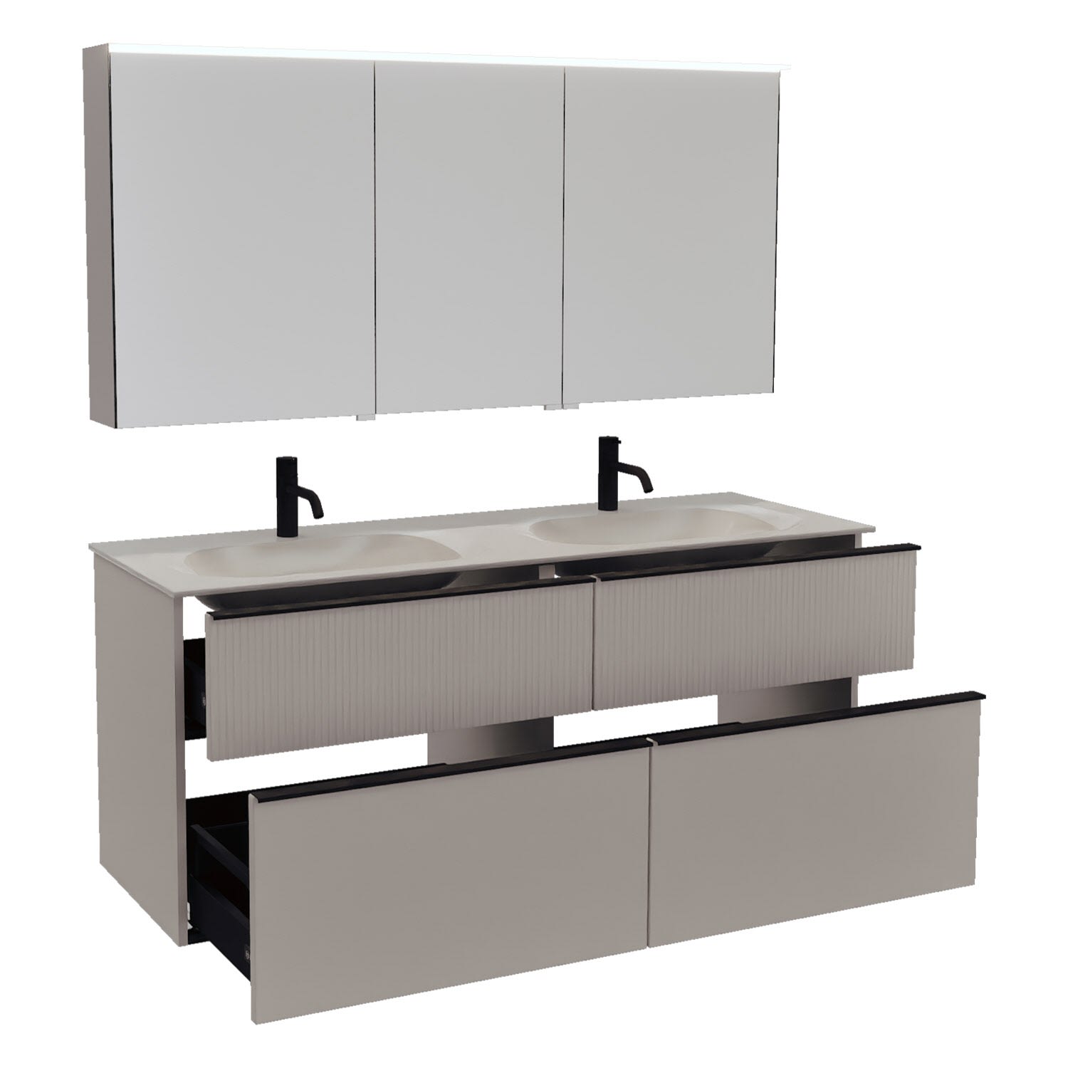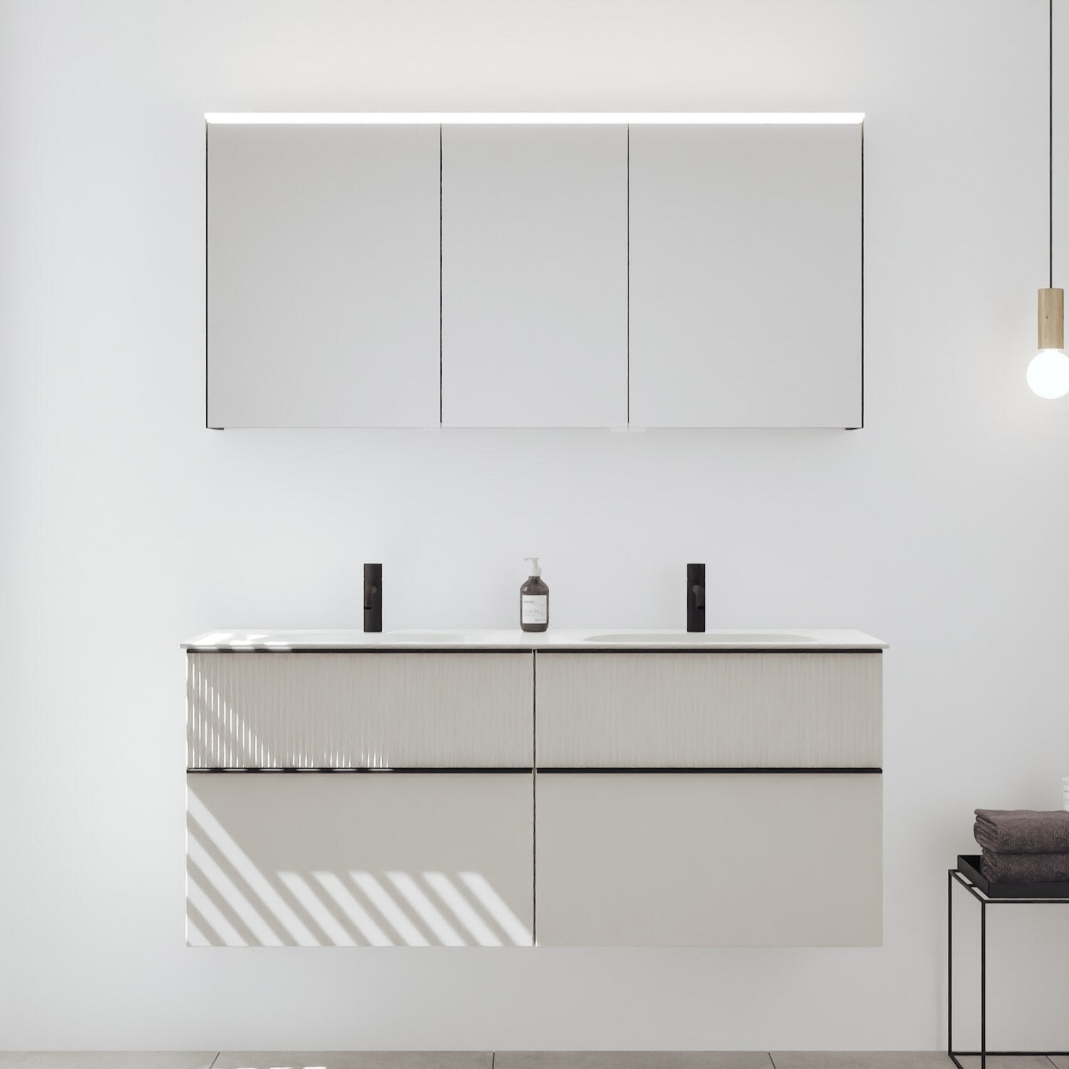burgbad Fiumo 2.0 Badmöbelset 142 cm mit Waschtisch mit Unterschrank mit Griff G0200 und Spiegelschrank