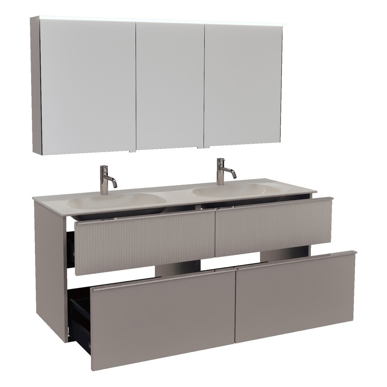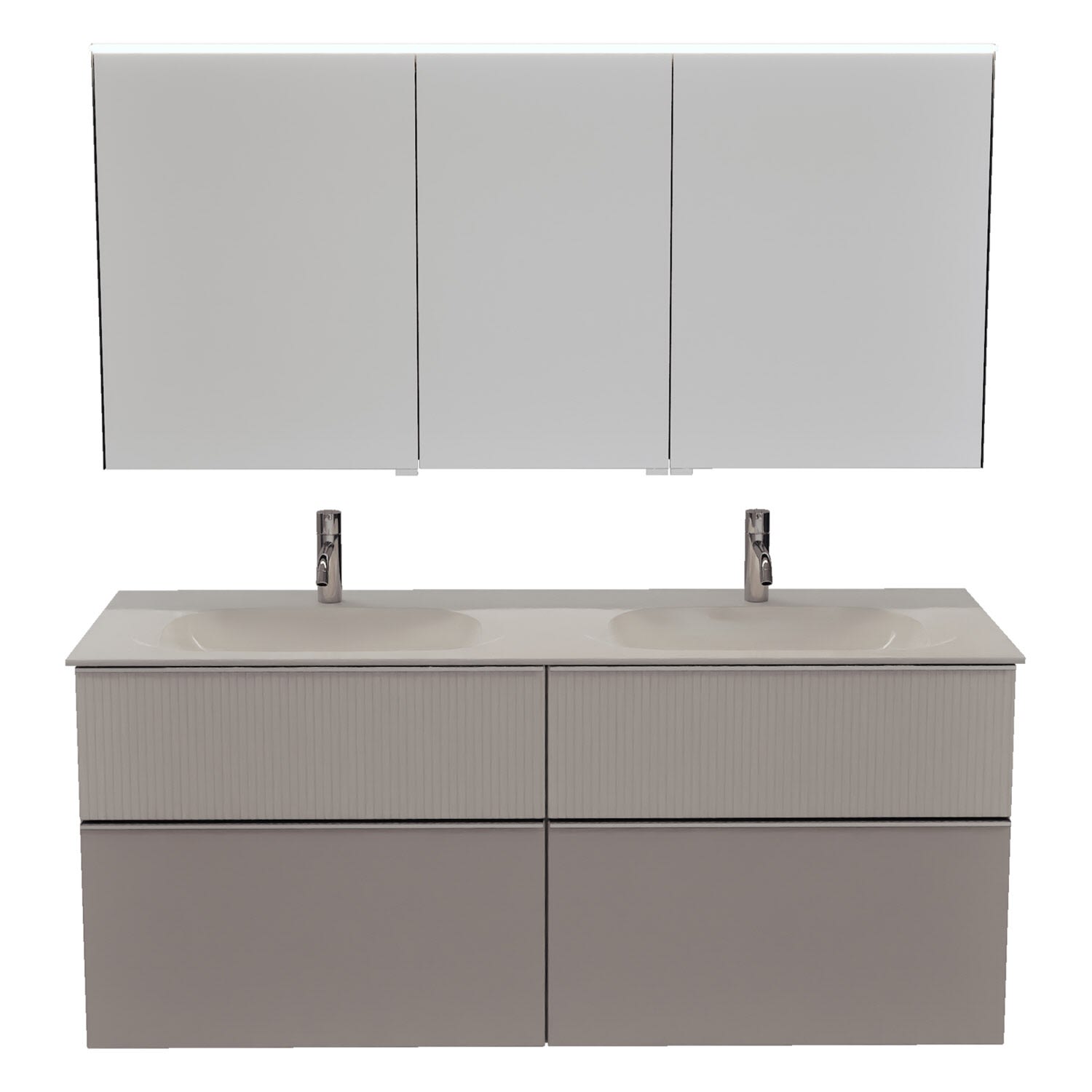 burgbad Fiumo 2.0 Badmöbelset 142 cm mit Waschtisch mit Unterschrank mit Griff G0146 und Spiegelschrank