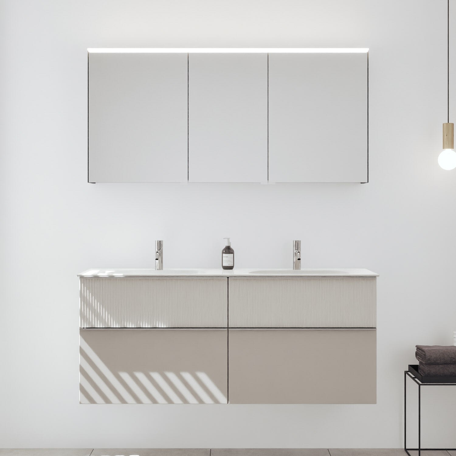- Spiegelschrank, Waschtischunterschrank, Waschtisch,burgbad cleanFlow, Befestigung außer Stockschrauben