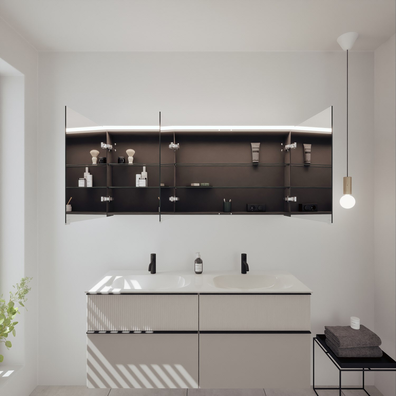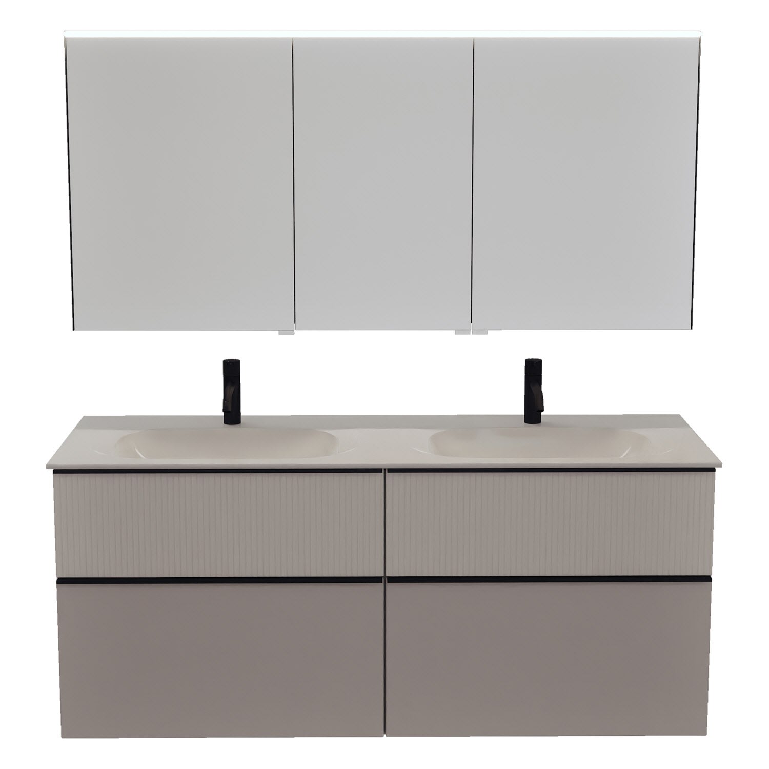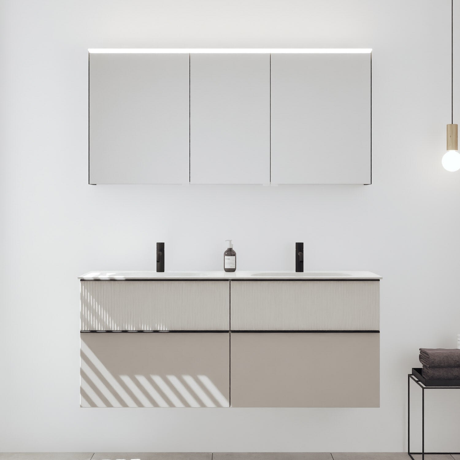 burgbad Fiumo 2.0 Badmöbelset 142 cm mit Waschtisch mit Unterschrank mit Griff G0200 und Spiegelschrank