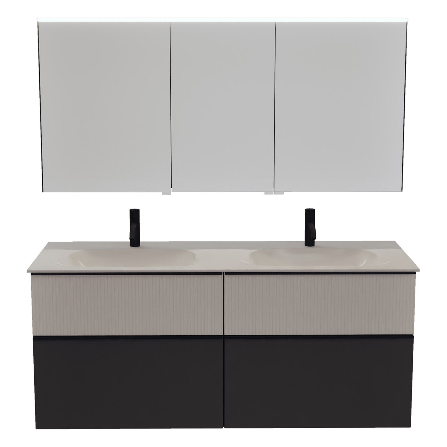 burgbad Fiumo 2.0 Badmöbelset 142 cm mit Waschtisch mit Unterschrank mit Griff G0200 und Spiegelschrank