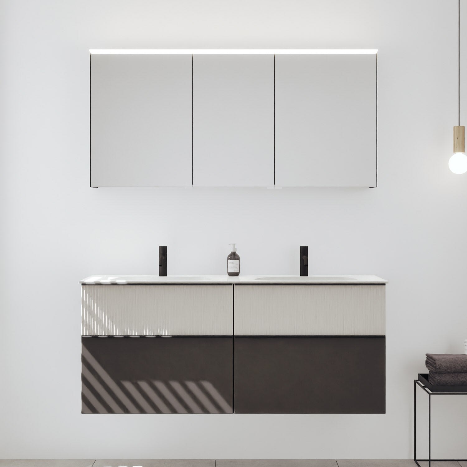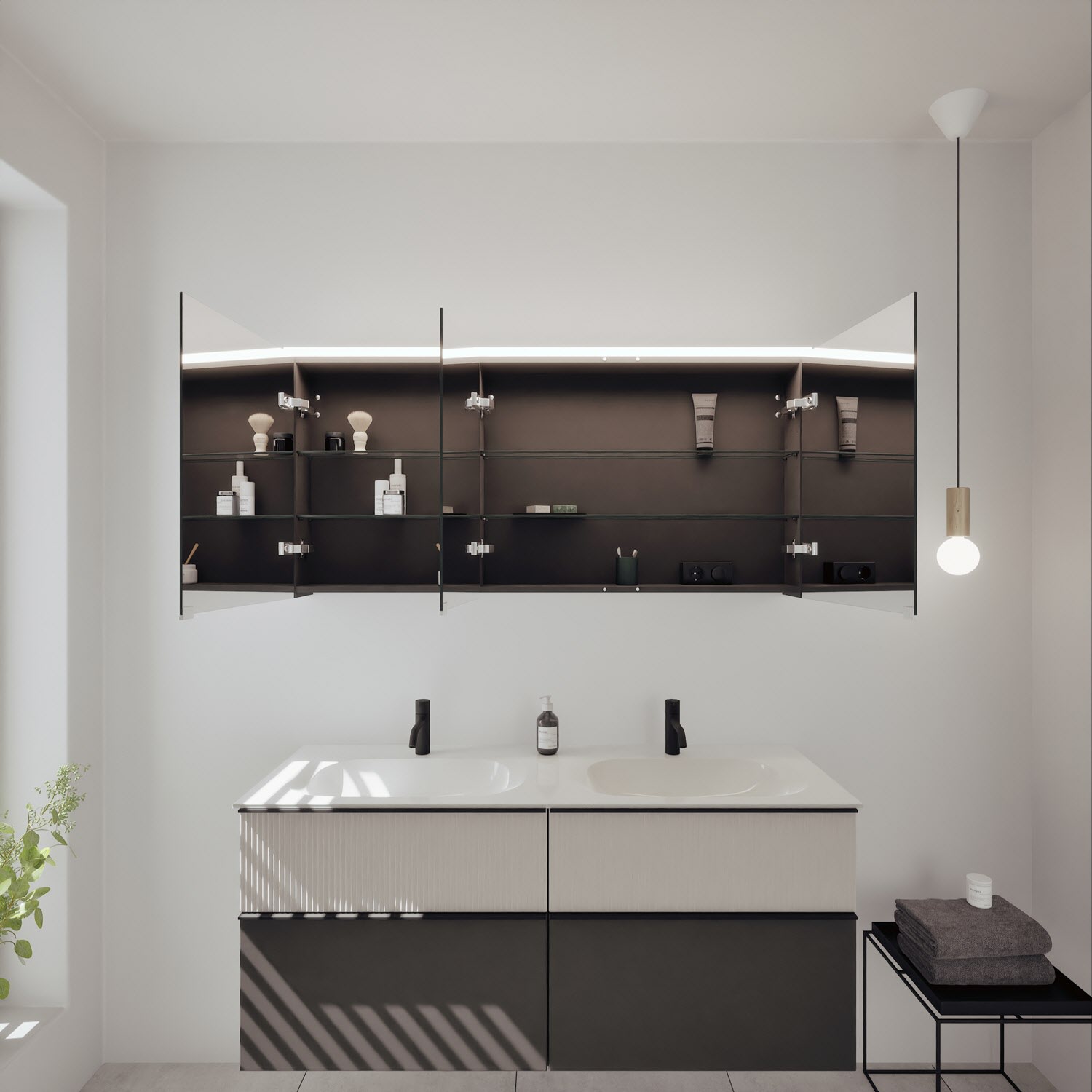 - Spiegelschrank, Waschtischunterschrank, Waschtisch,burgbad cleanFlow, Befestigung außer Stockschrauben