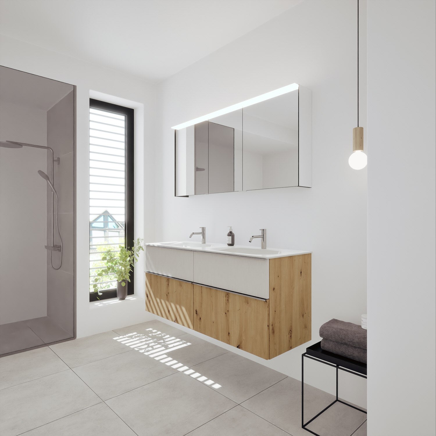 - Spiegelschrank, Waschtischunterschrank, Waschtisch,burgbad cleanFlow, Befestigung außer Stockschrauben