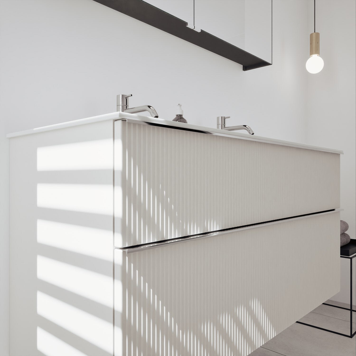 burgbad Fiumo 2.0 Badmöbelset 122 cm mit Waschtisch mit Unterschrank mit Griff G0146 und Spiegelschrank