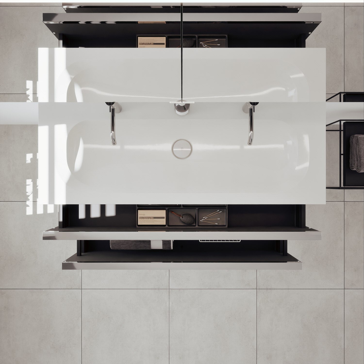 - Spiegelschrank, Waschtischunterschrank, Waschtisch,burgbad cleanFlow, Befestigung außer Stockschrauben