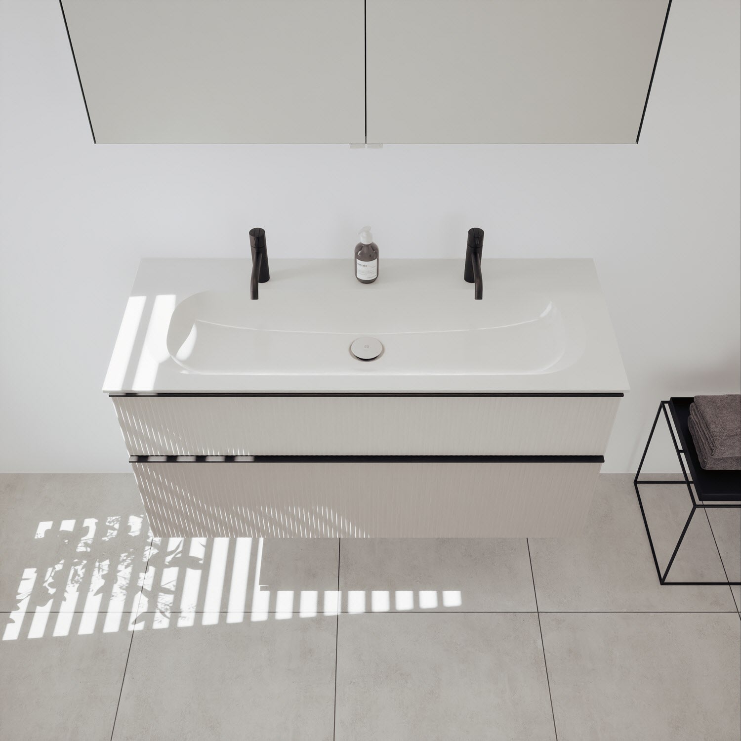 - Spiegelschrank, Waschtischunterschrank, Waschtisch,burgbad cleanFlow, Befestigung außer Stockschrauben