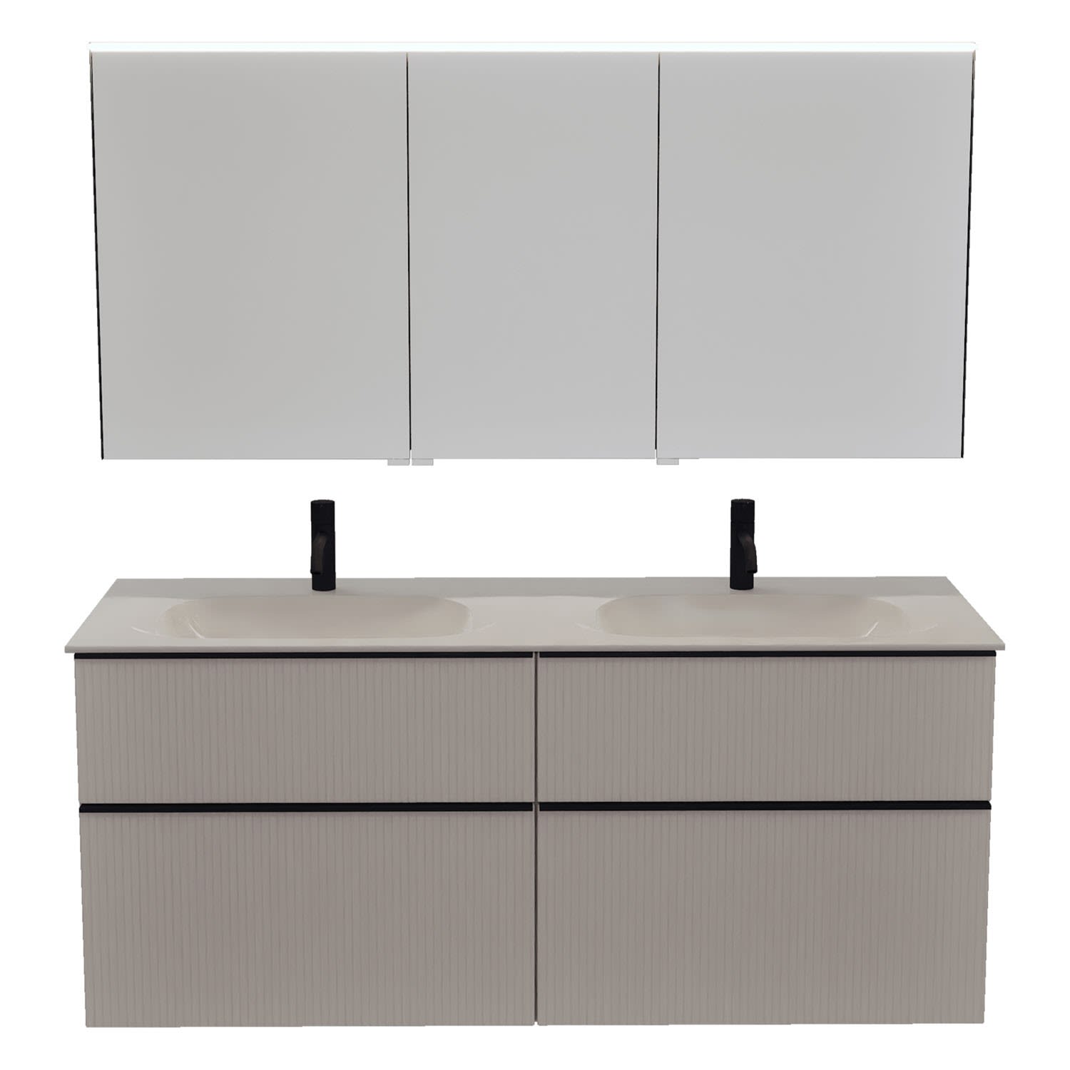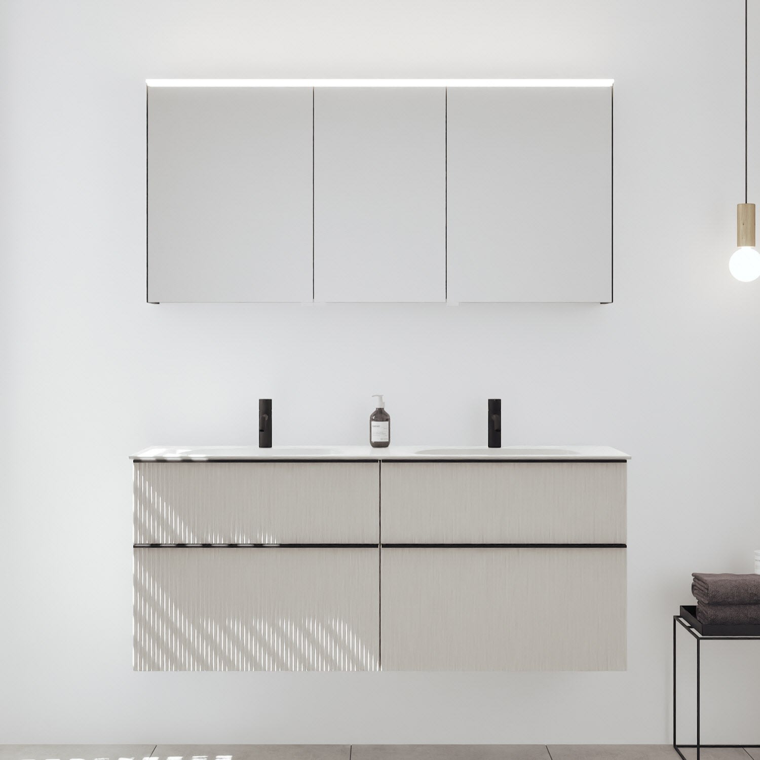 burgbad Fiumo 2.0 Badmöbelset 142 cm mit Waschtisch mit Unterschrank mit Griff G0200 und Spiegelschrank