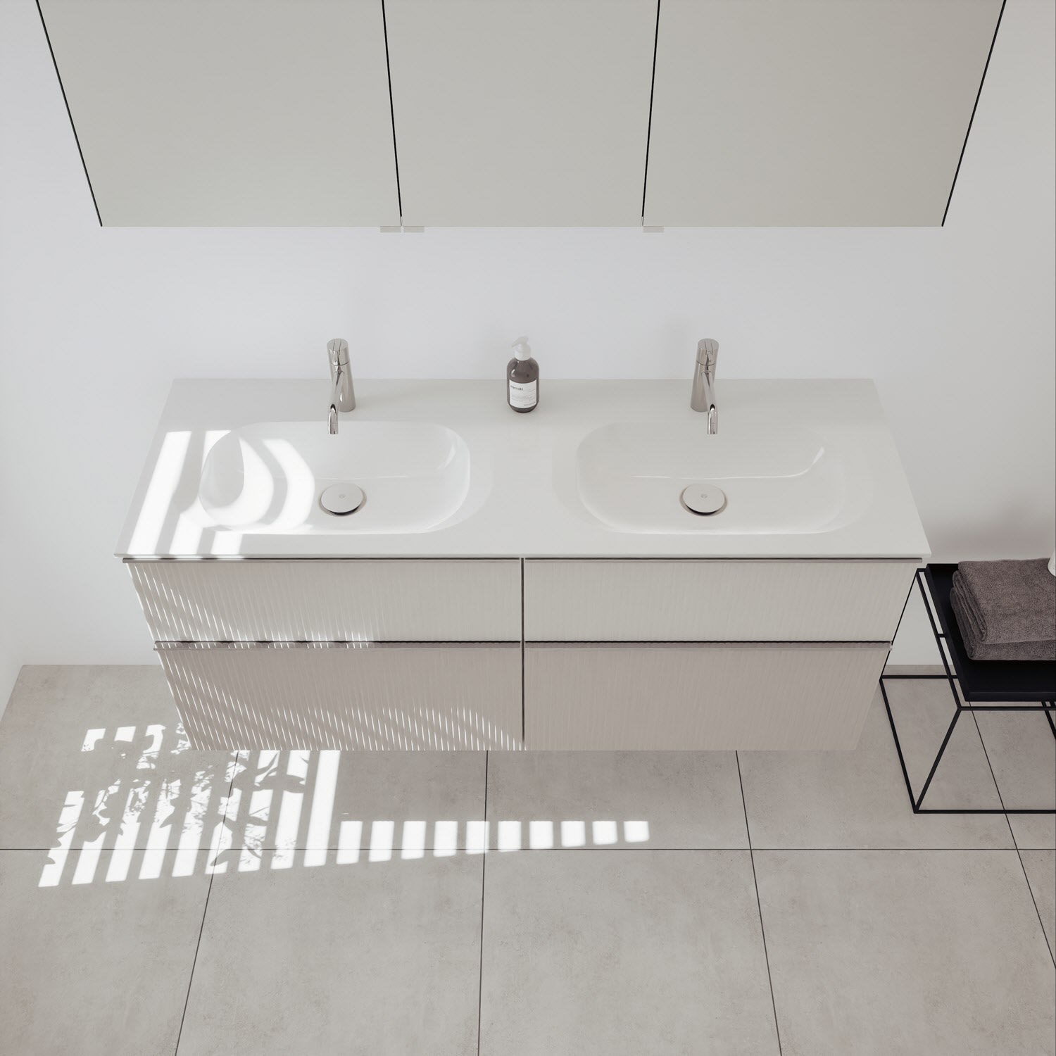 burgbad Fiumo 2.0 Badmöbelset 142 cm mit Waschtisch mit Unterschrank mit Griff G0146 und Spiegelschrank