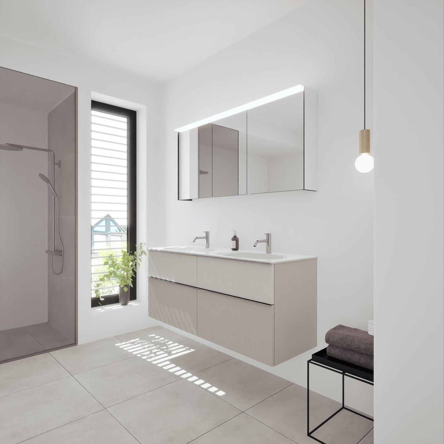 - Spiegelschrank, Waschtischunterschrank, Waschtisch,burgbad cleanFlow, Befestigung außer Stockschrauben