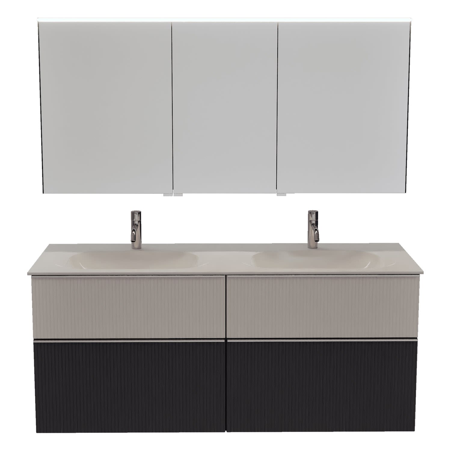 burgbad Fiumo 2.0 Badmöbelset 142 cm mit Waschtisch mit Unterschrank mit Griff G0146 und Spiegelschrank