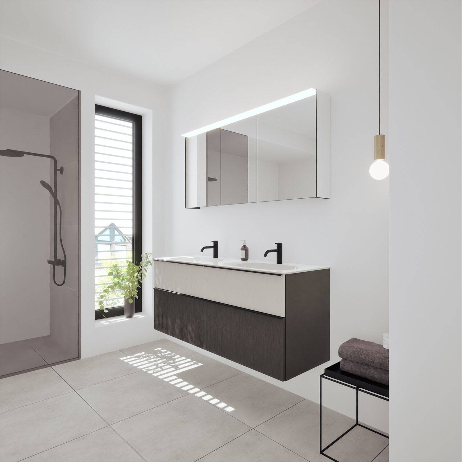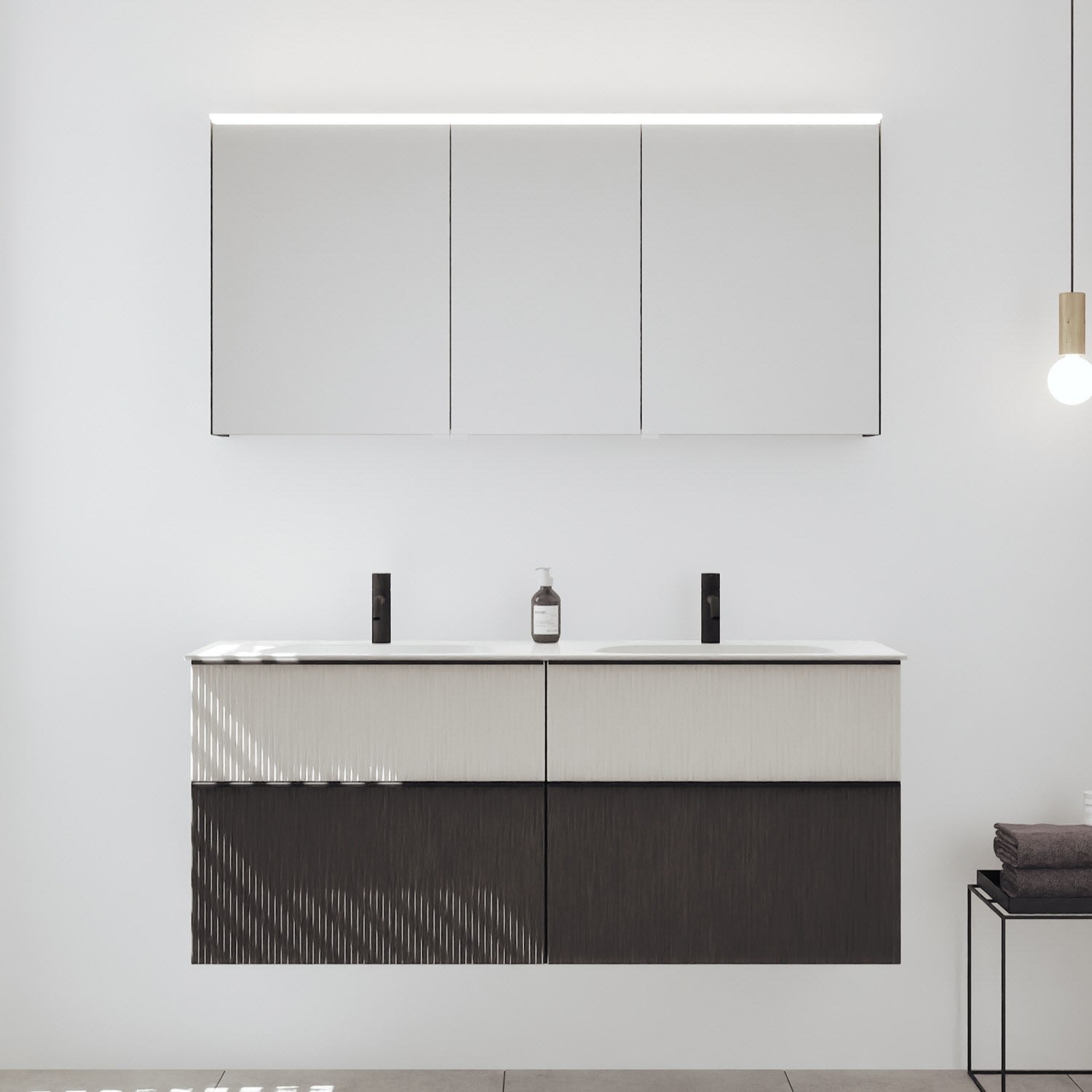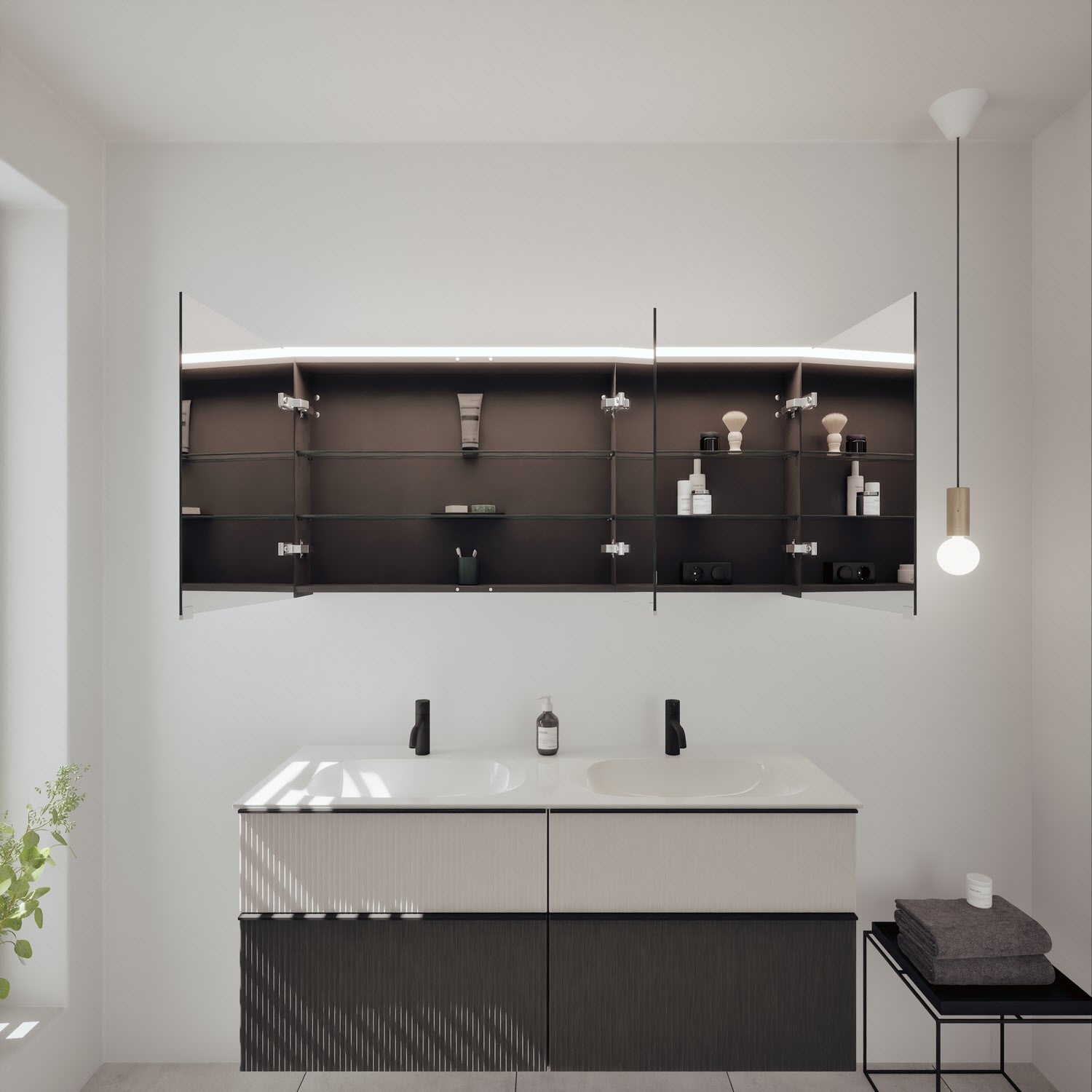 - Spiegelschrank, Waschtischunterschrank, Waschtisch,burgbad cleanFlow, Befestigung außer Stockschrauben