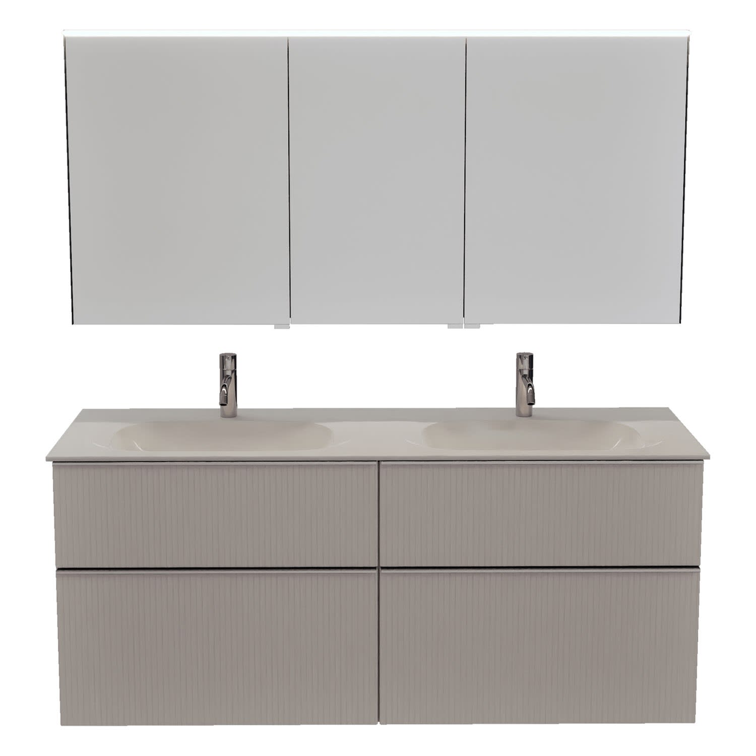burgbad Fiumo 2.0 Badmöbelset 142 cm mit Waschtisch mit Unterschrank mit Griff G0146 und Spiegelschrank