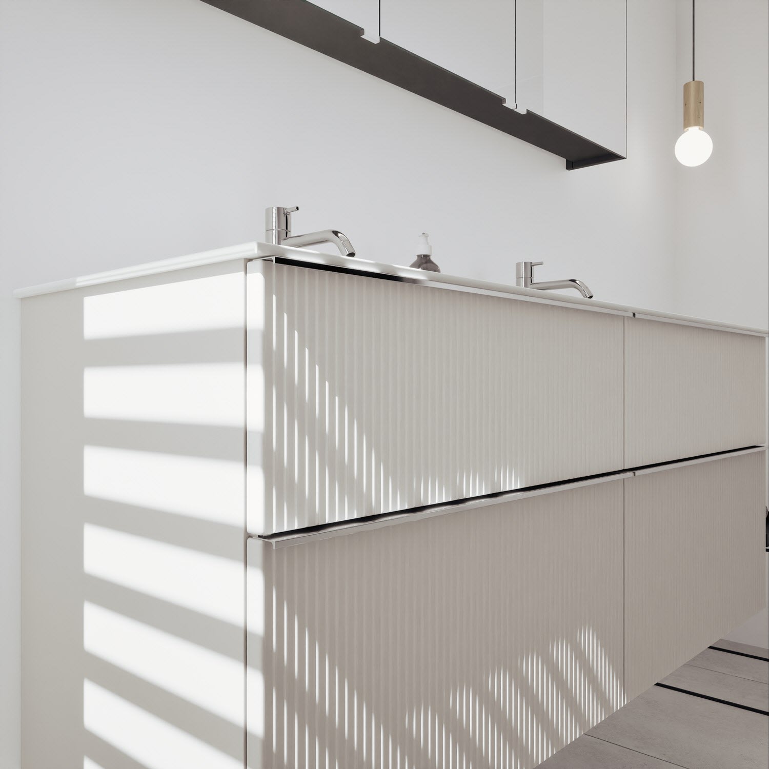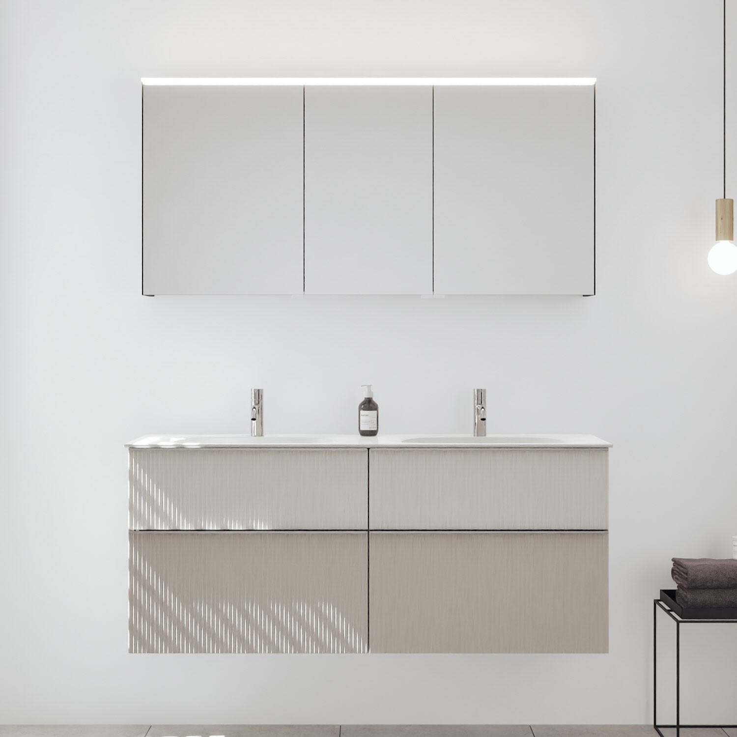burgbad Fiumo 2.0 Badmöbelset 142 cm mit Waschtisch mit Unterschrank mit Griff G0146 und Spiegelschrank