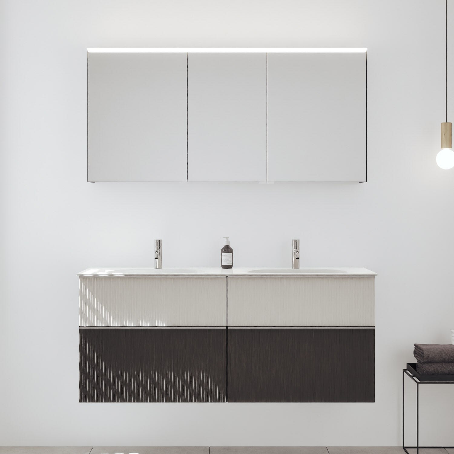 - Spiegelschrank, Waschtischunterschrank, Waschtisch,burgbad cleanFlow, Befestigung außer Stockschrauben