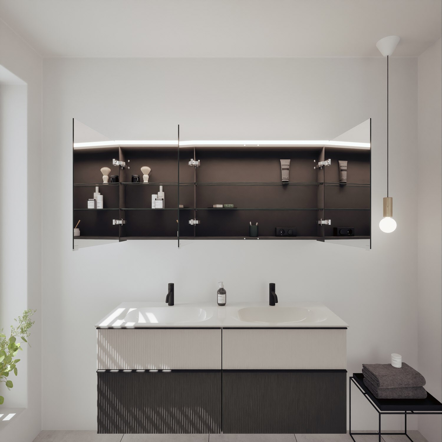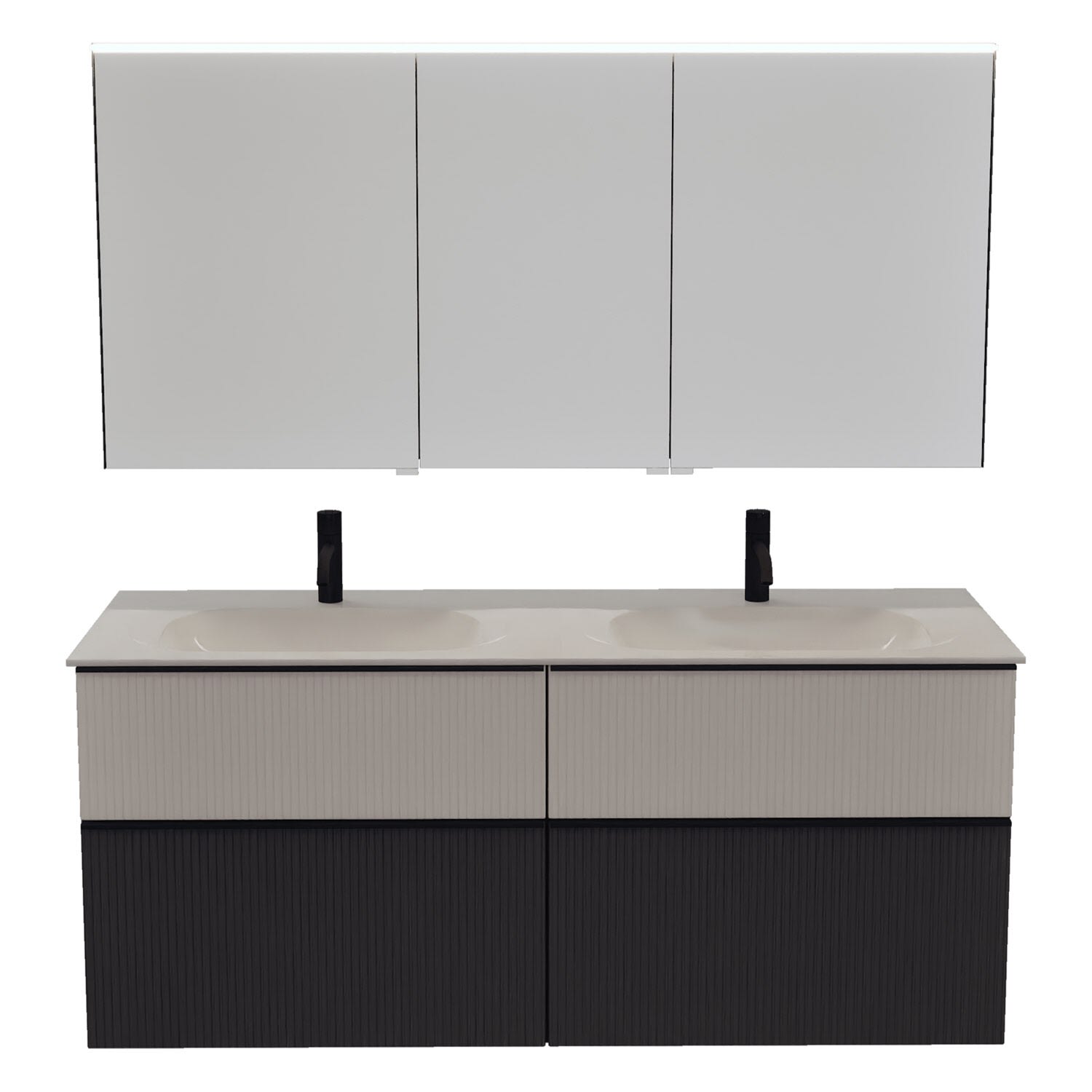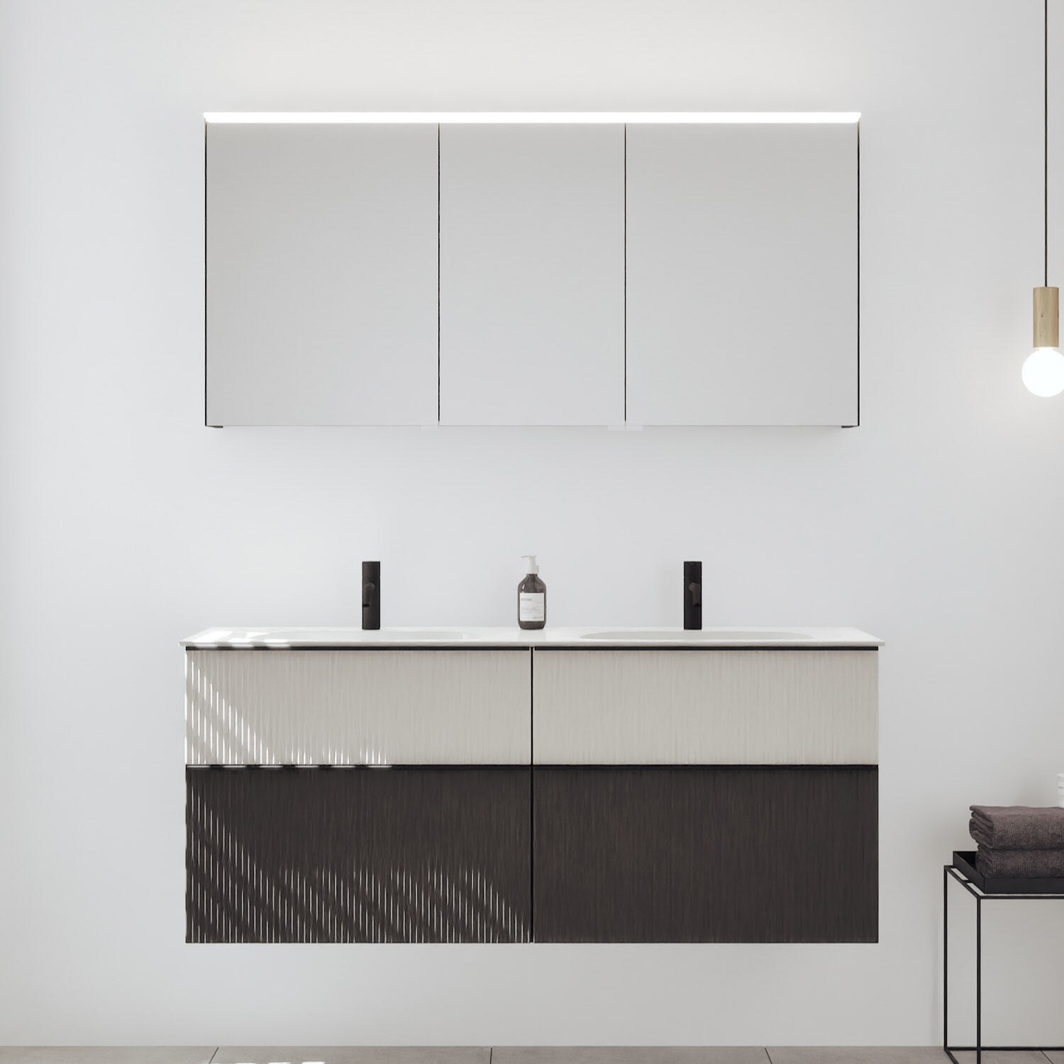 burgbad Fiumo 2.0 Badmöbelset 142 cm mit Waschtisch mit Unterschrank mit Griff G0200 und Spiegelschrank