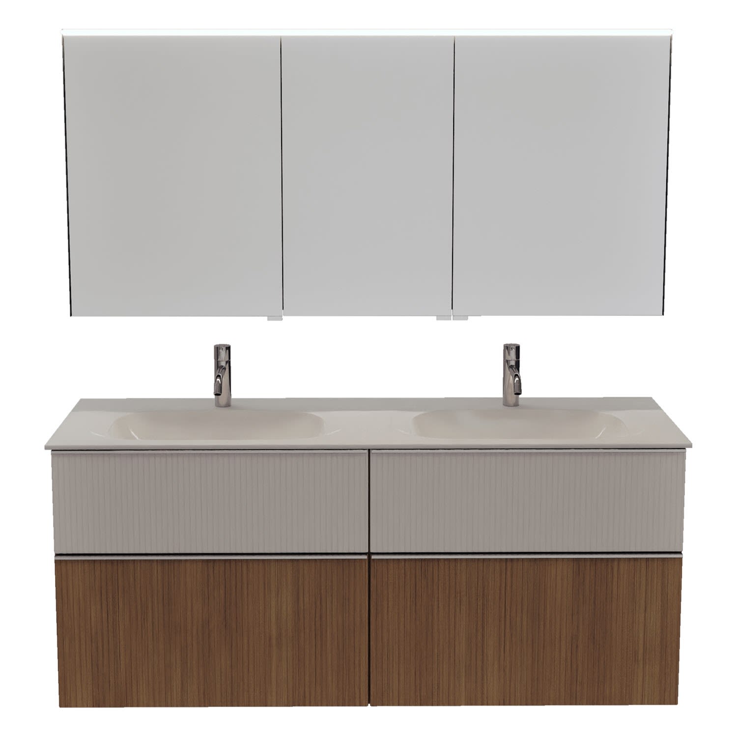 burgbad Fiumo 2.0 Badmöbelset 142 cm mit Waschtisch mit Unterschrank mit Griff G0146 und Spiegelschrank
