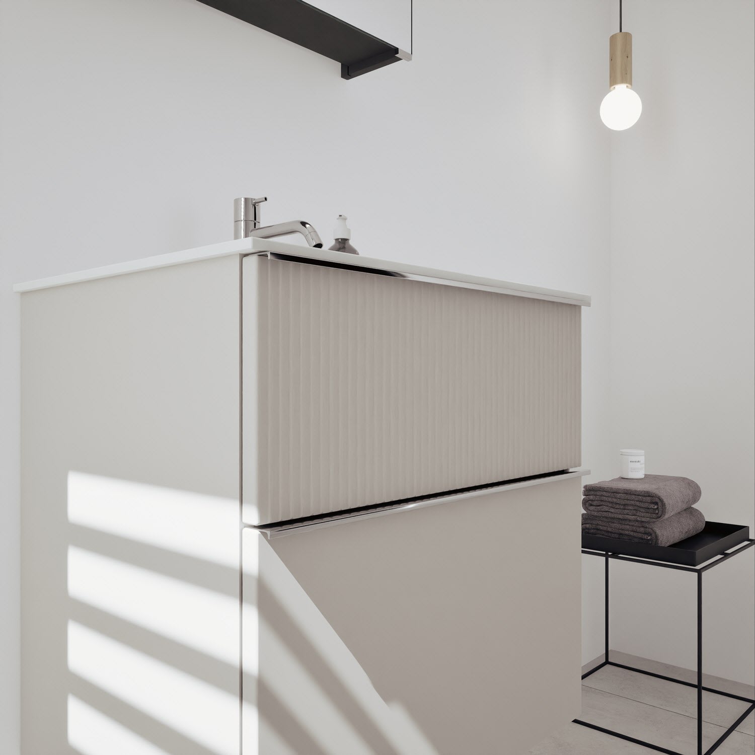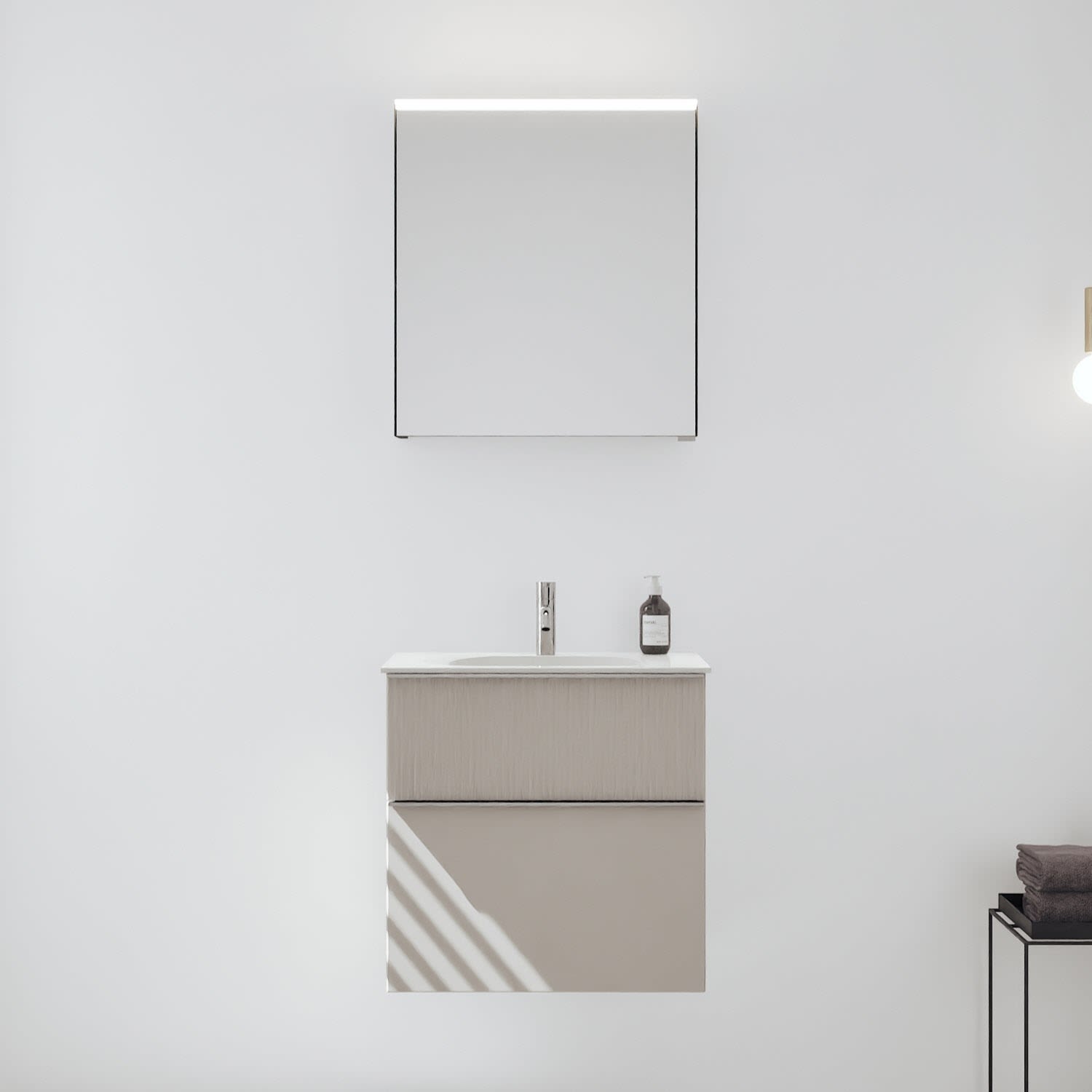 - Spiegelschrank, Waschtischunterschrank, Waschtisch, burgbad cleanFlow, Befestigung außer Stockschrauben