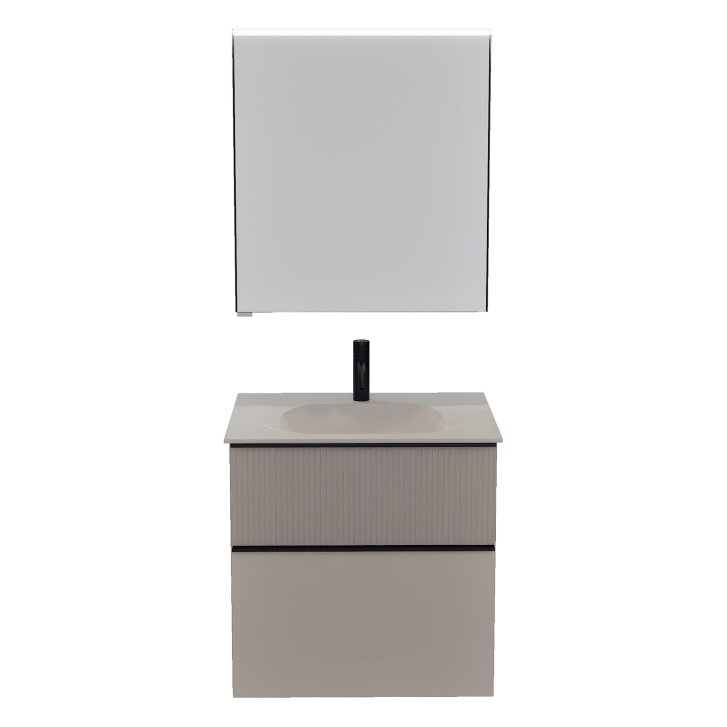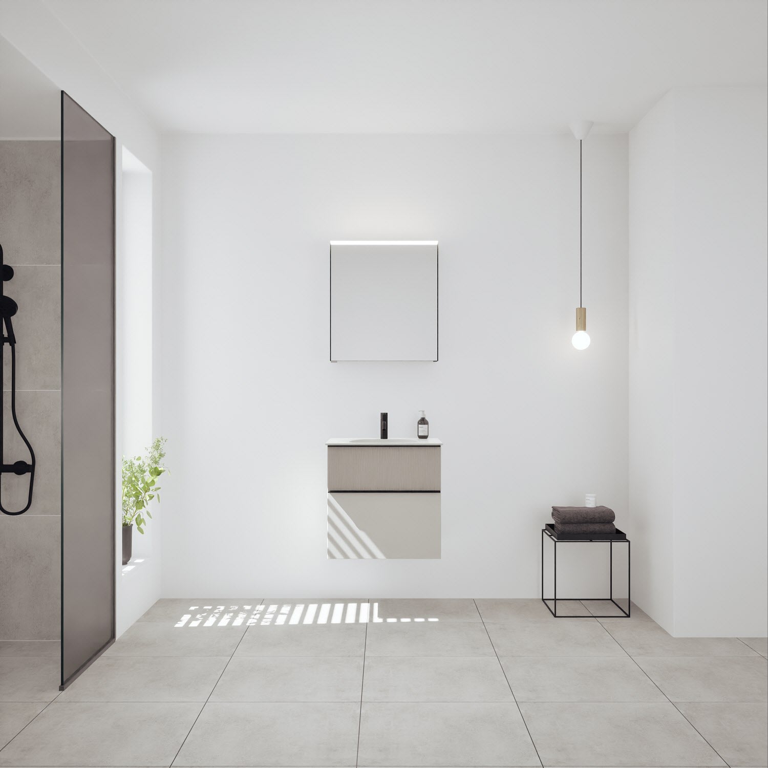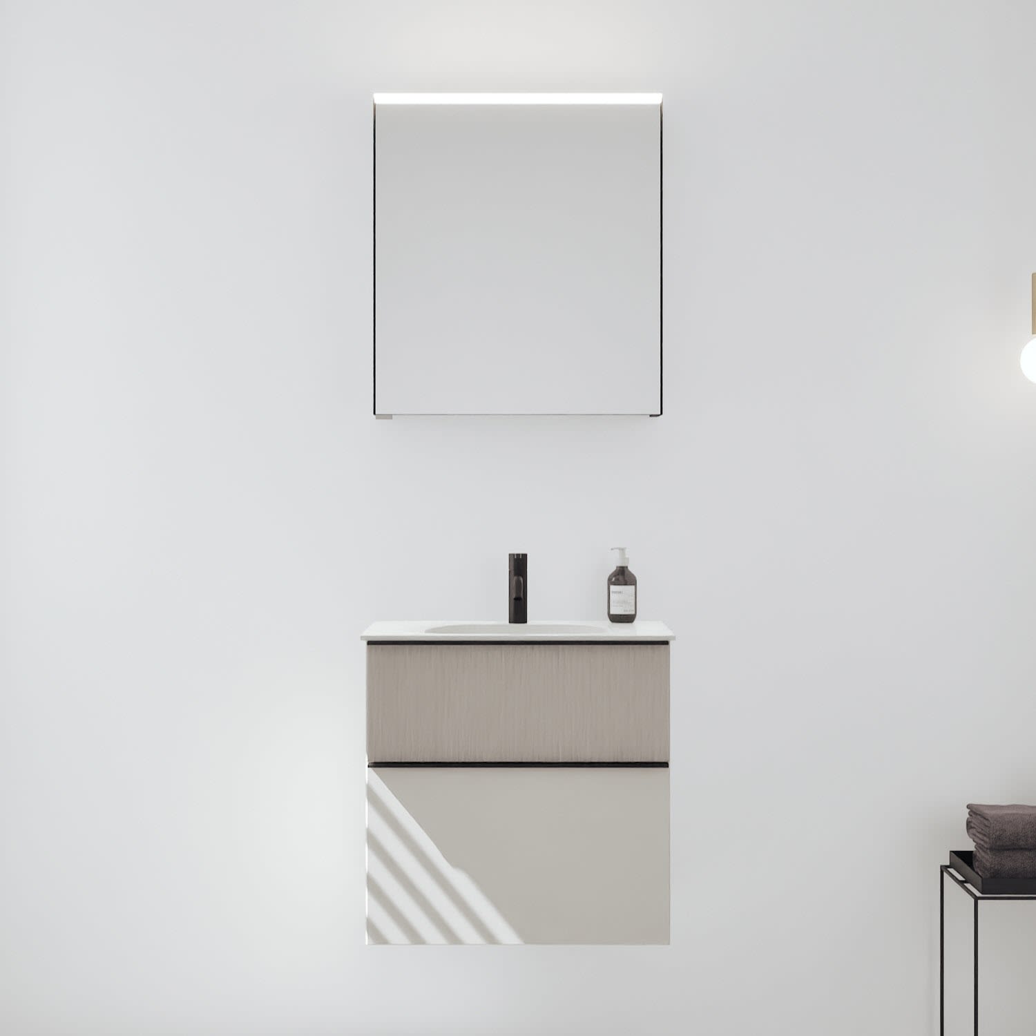 burgbad Fiumo 2.0 Badmöbelset 62 cm mit Waschtisch mit Unterschrank mit Griff G0200 und Spiegelschrank