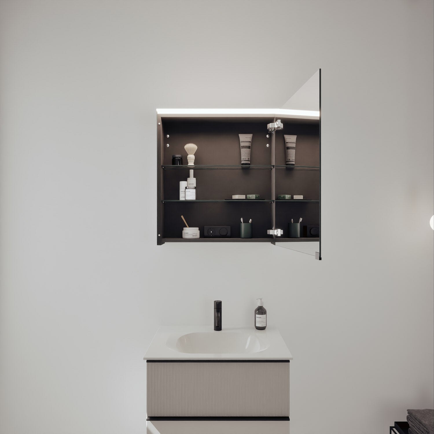 - Spiegelschrank, Waschtischunterschrank, Waschtisch, burgbad cleanFlow, Befestigung außer Stockschrauben