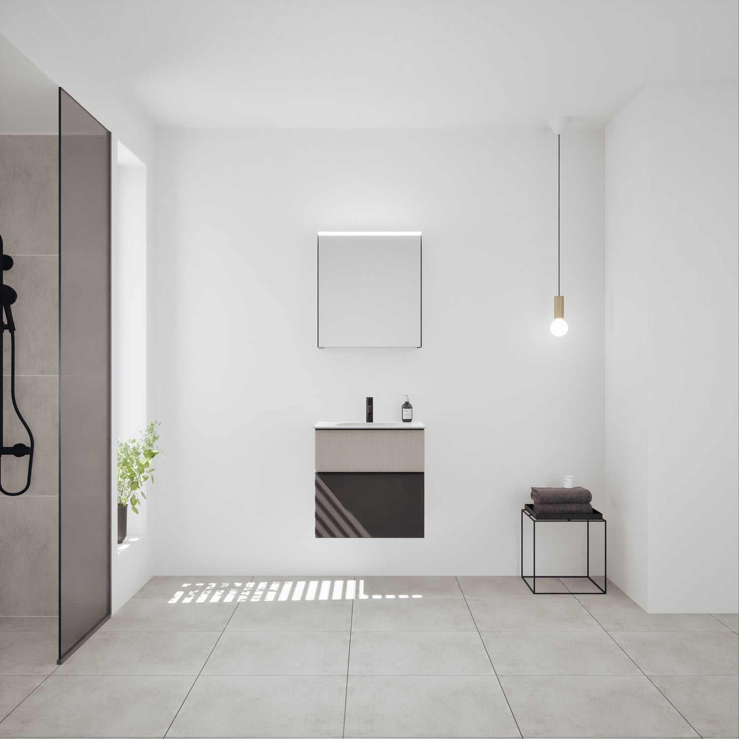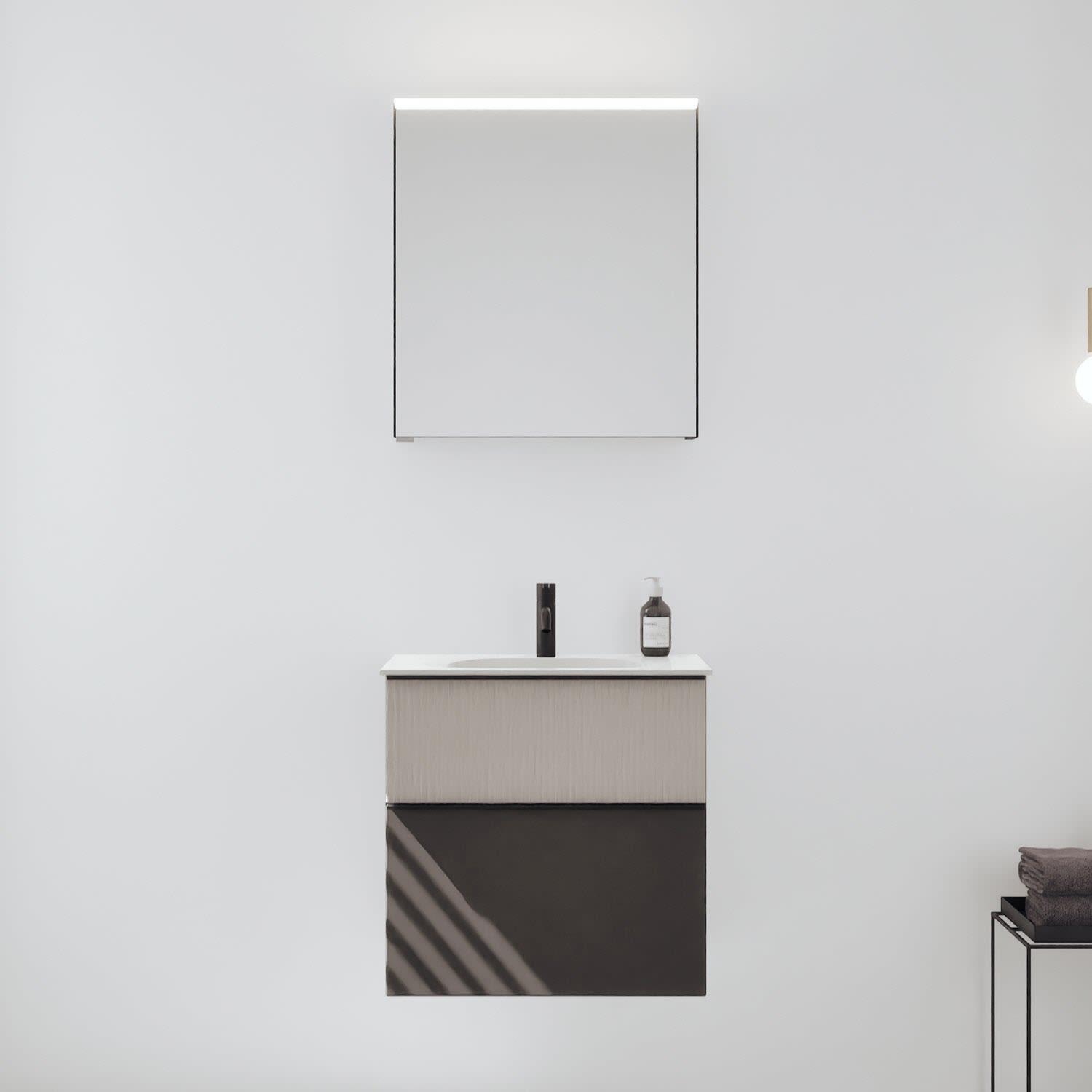 burgbad Fiumo 2.0 Badmöbelset 62 cm mit Waschtisch mit Unterschrank mit Griff G0200 und Spiegelschrank