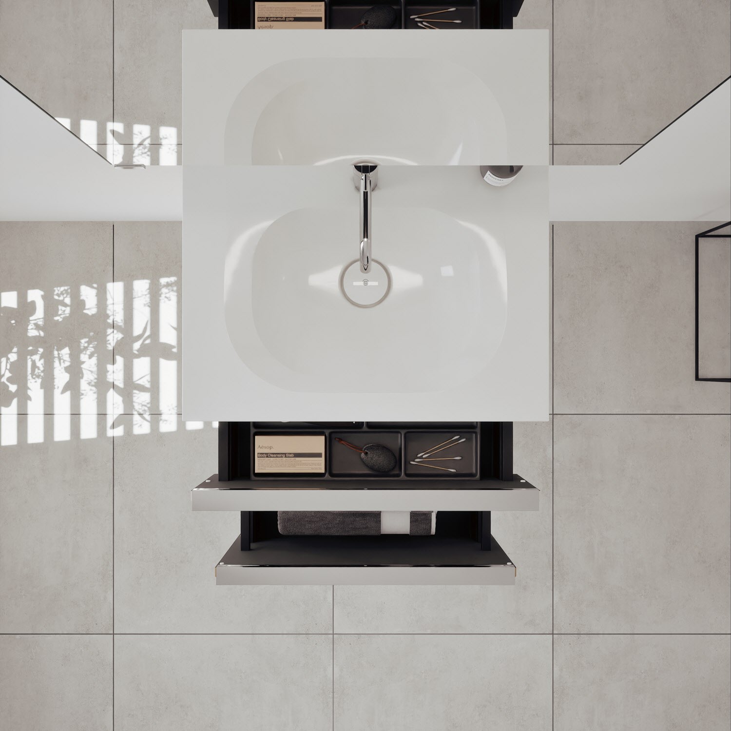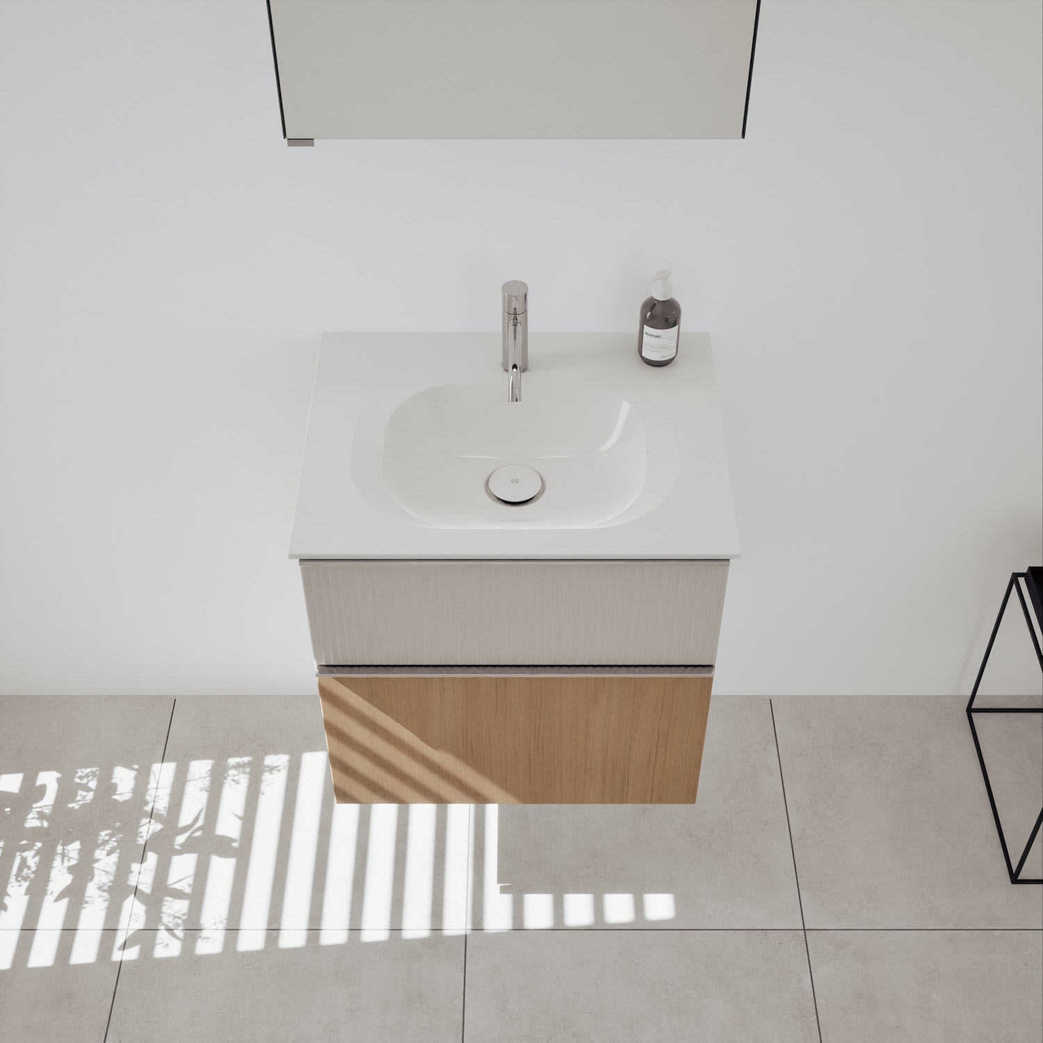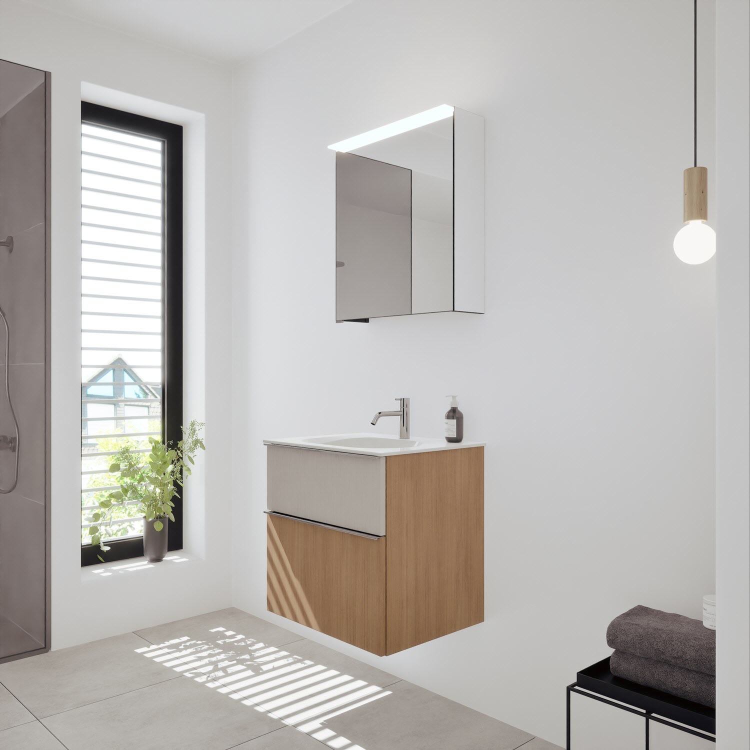 - Spiegelschrank, Waschtischunterschrank, Waschtisch, burgbad cleanFlow, Befestigung außer Stockschrauben