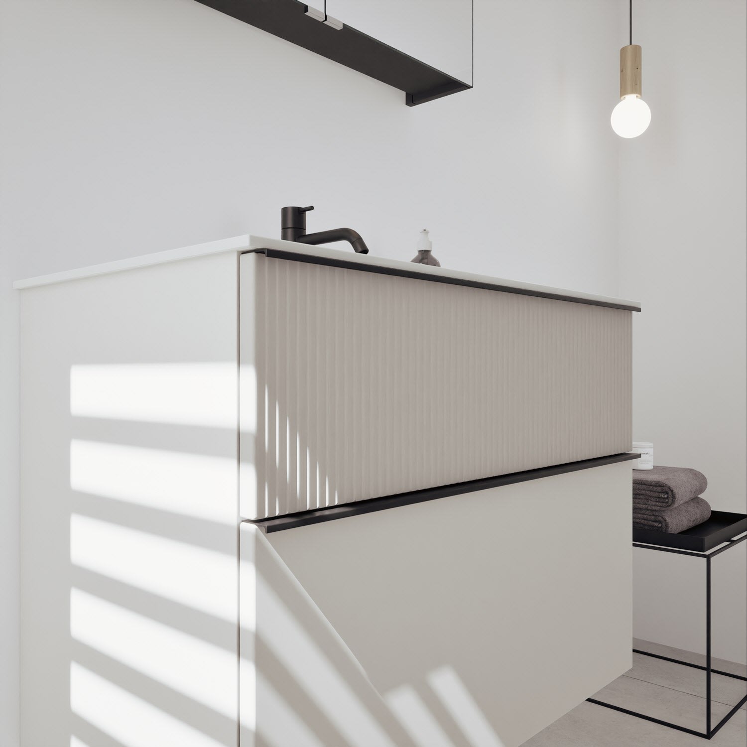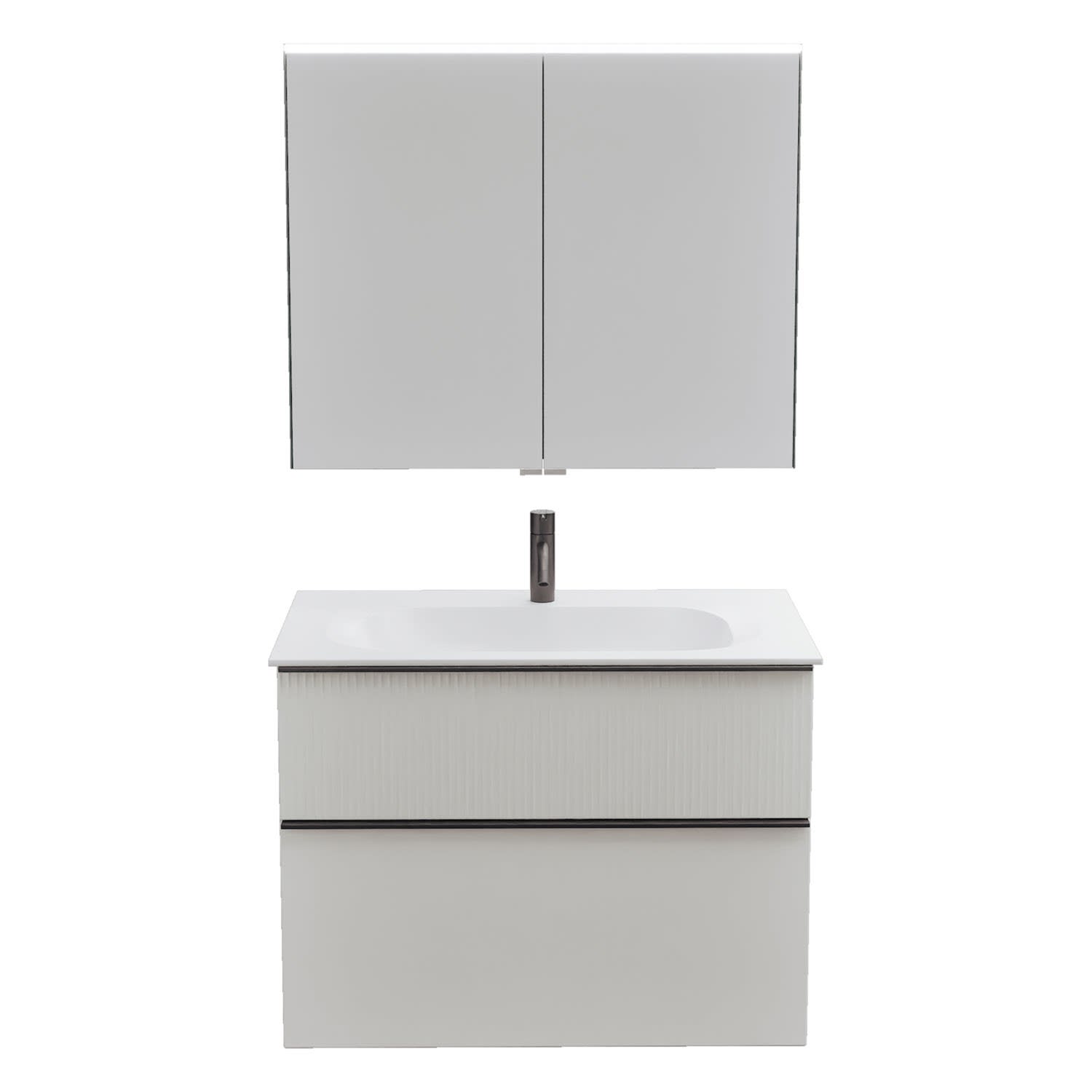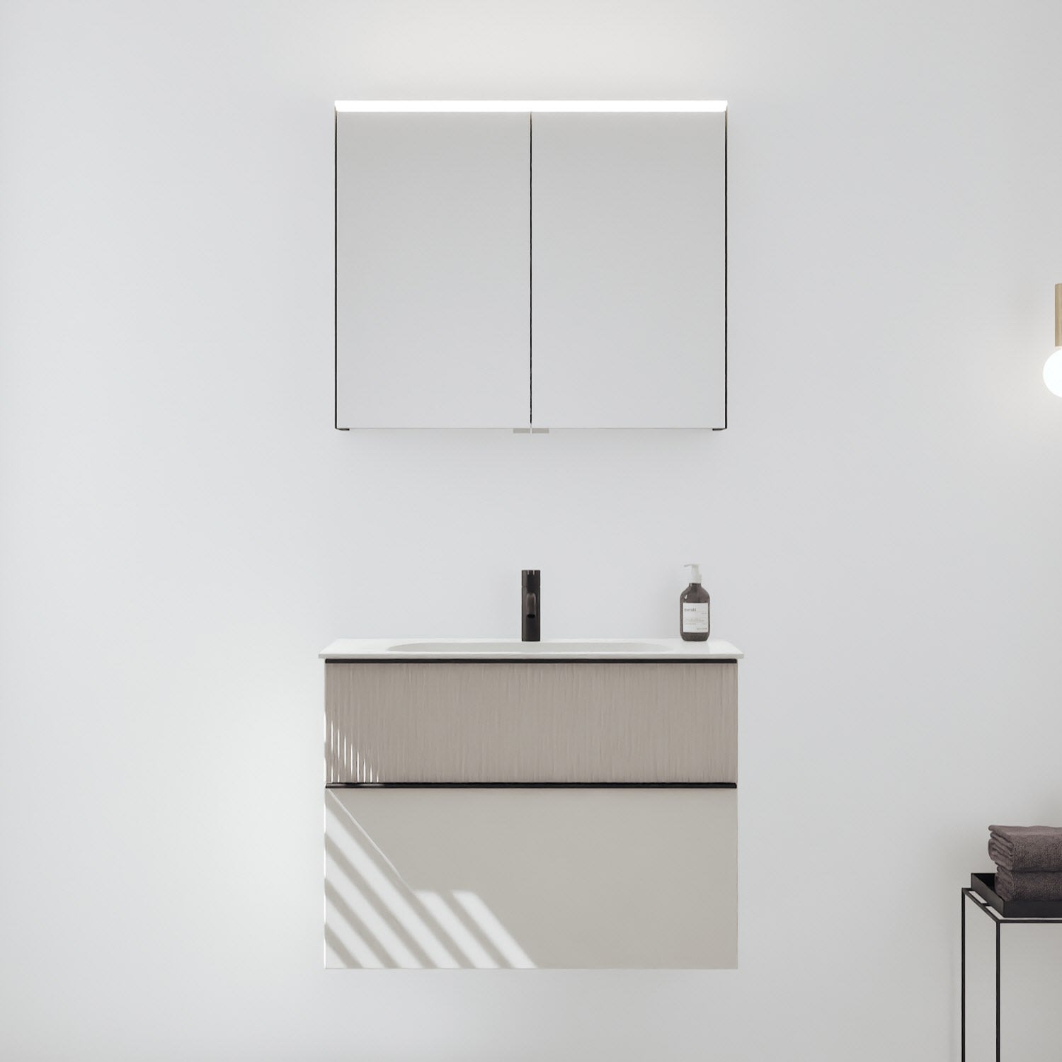 burgbad Fiumo 2.0 Badmöbelset 82 cm mit Waschtisch mit Unterschrank mit Griff G0200 und Spiegelschrank