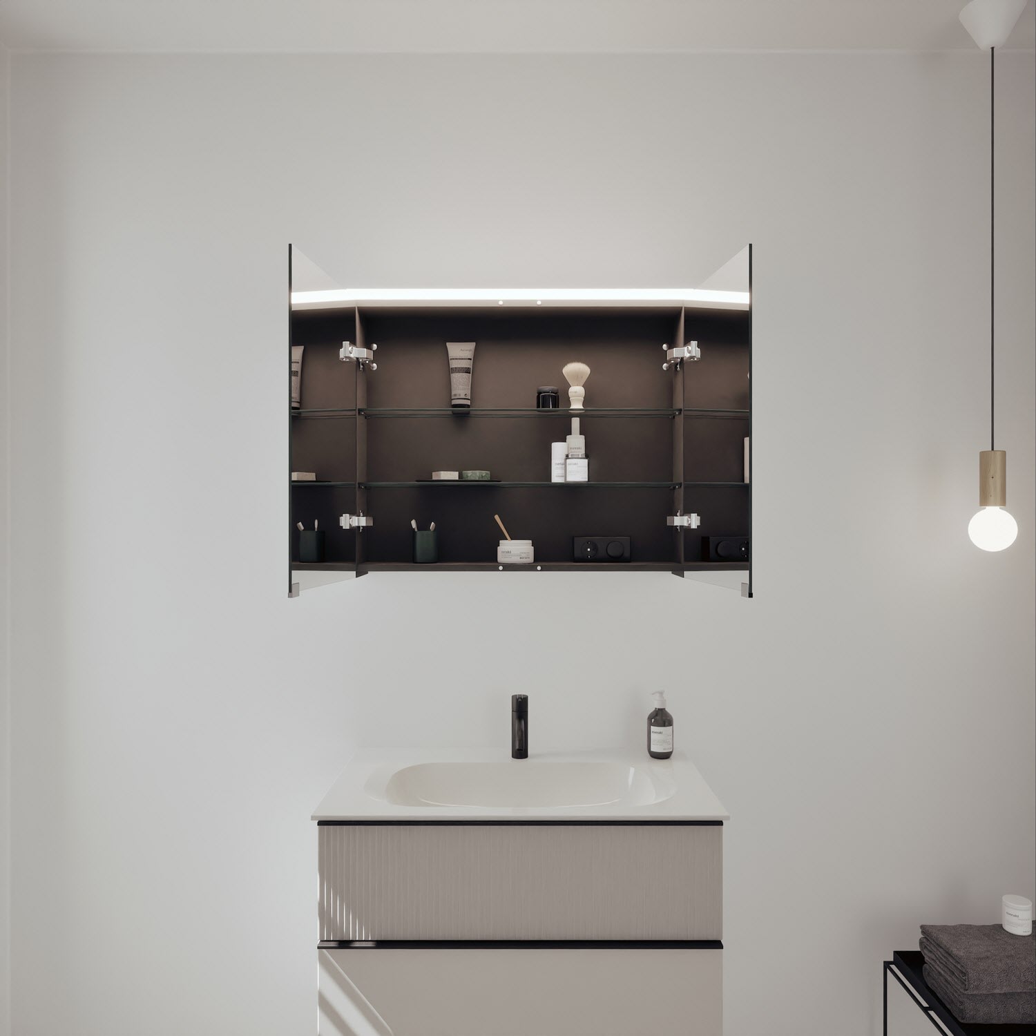 - Spiegelschrank, Waschtischunterschrank, Waschtisch, burgbad cleanFlow, Befestigung außer Stockschrauben