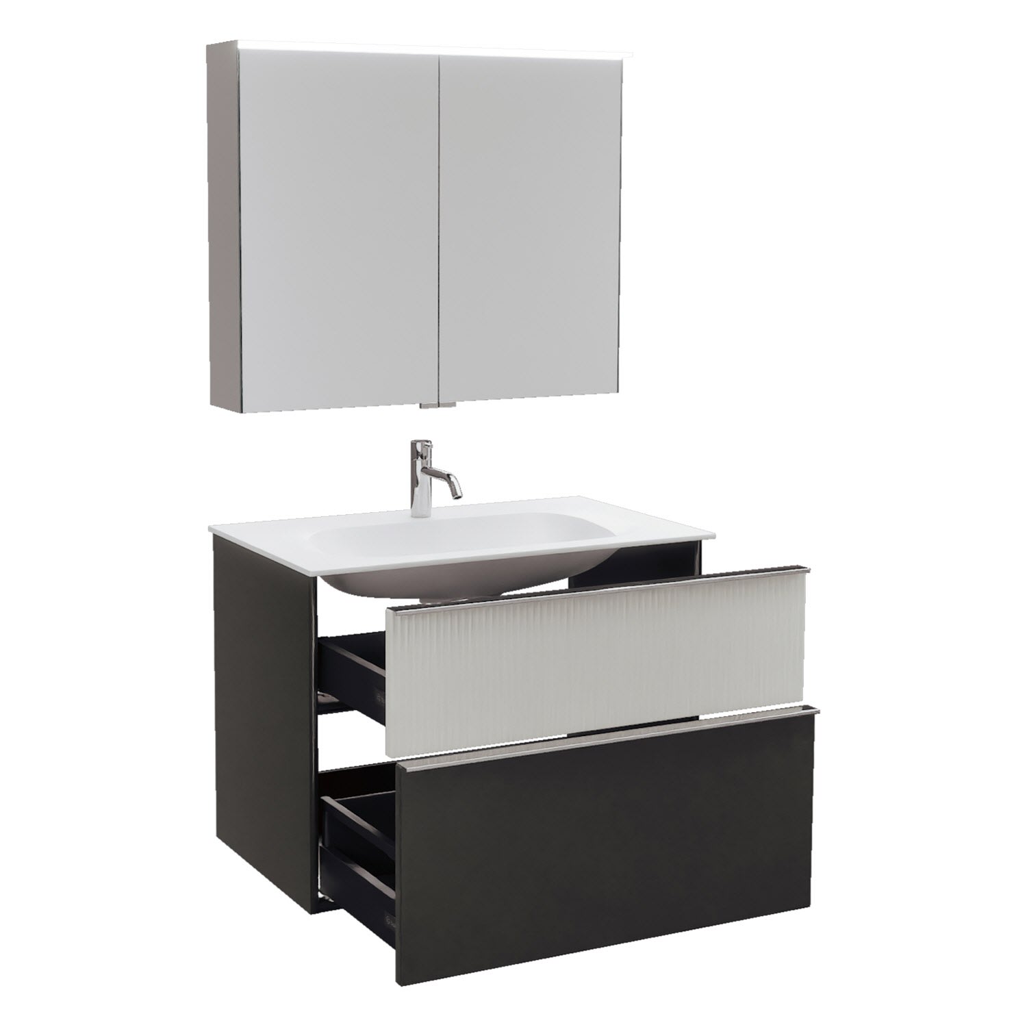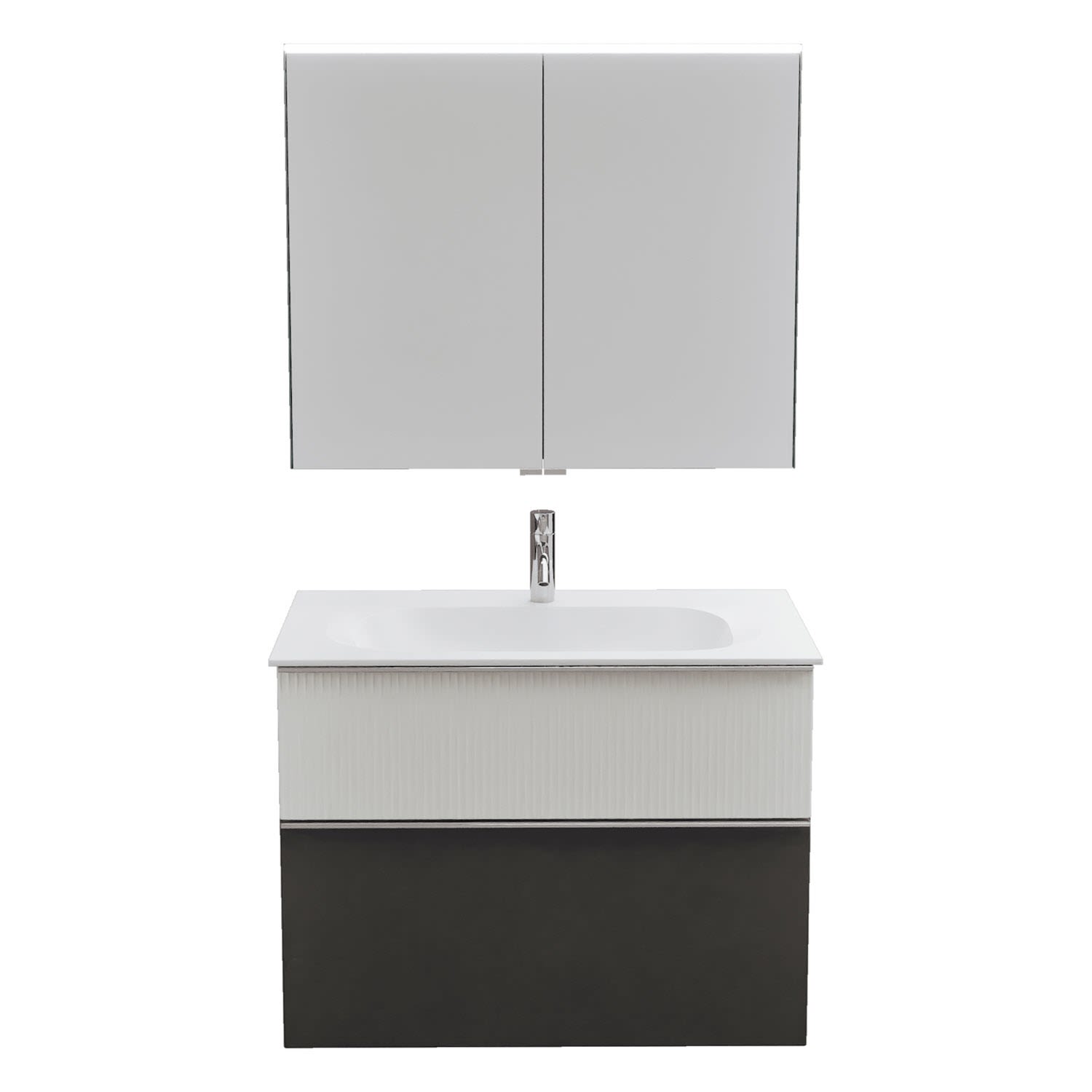 burgbad Fiumo 2.0 Badmöbelset 82 cm mit Waschtisch mit Unterschrank mit Griff G0146 und Spiegelschrank