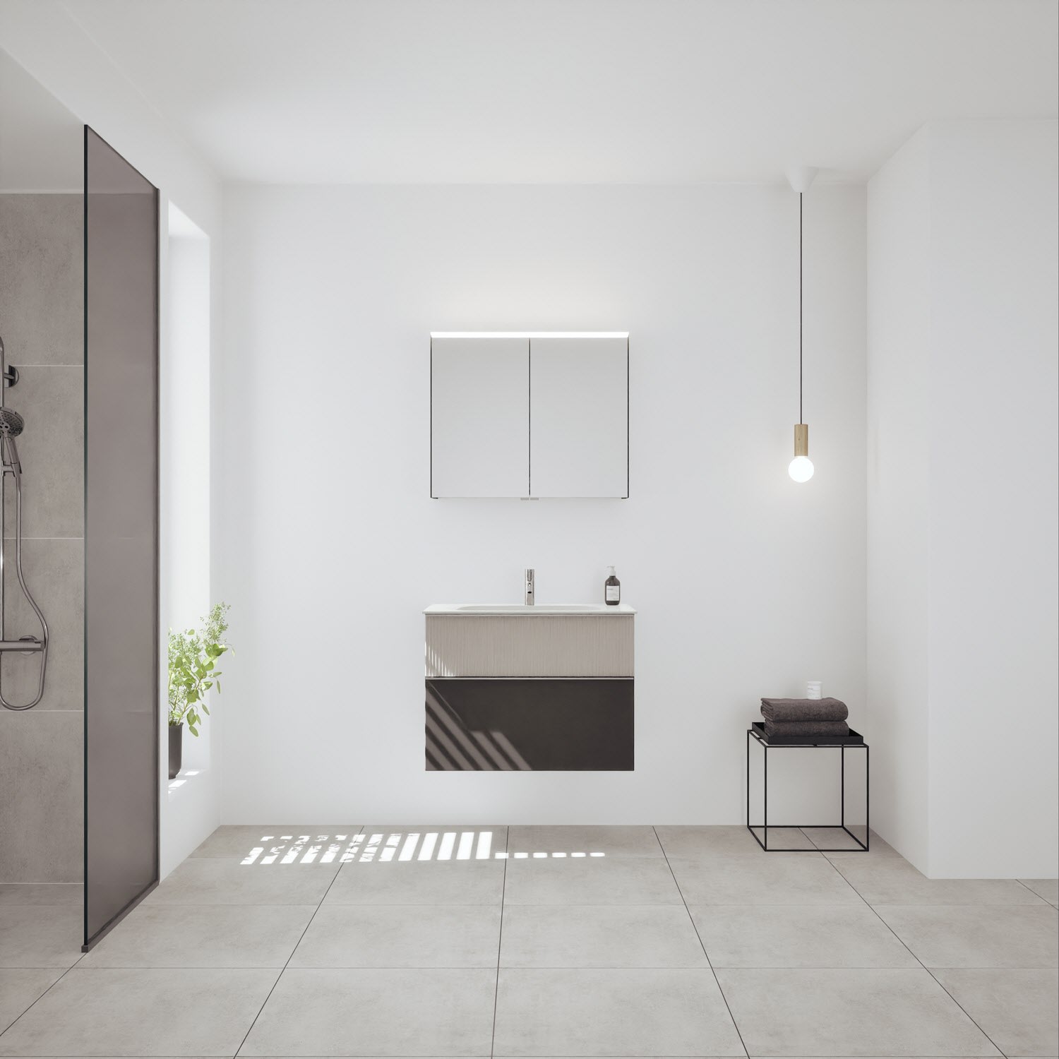 - Spiegelschrank, Waschtischunterschrank, Waschtisch, burgbad cleanFlow, Befestigung außer Stockschrauben