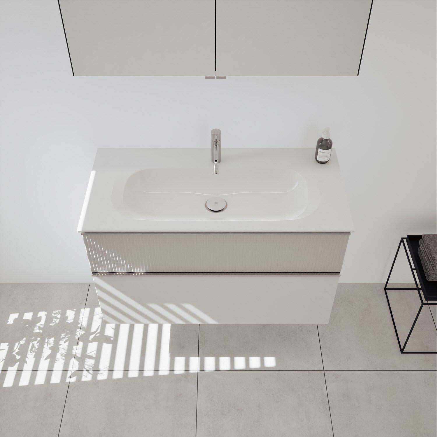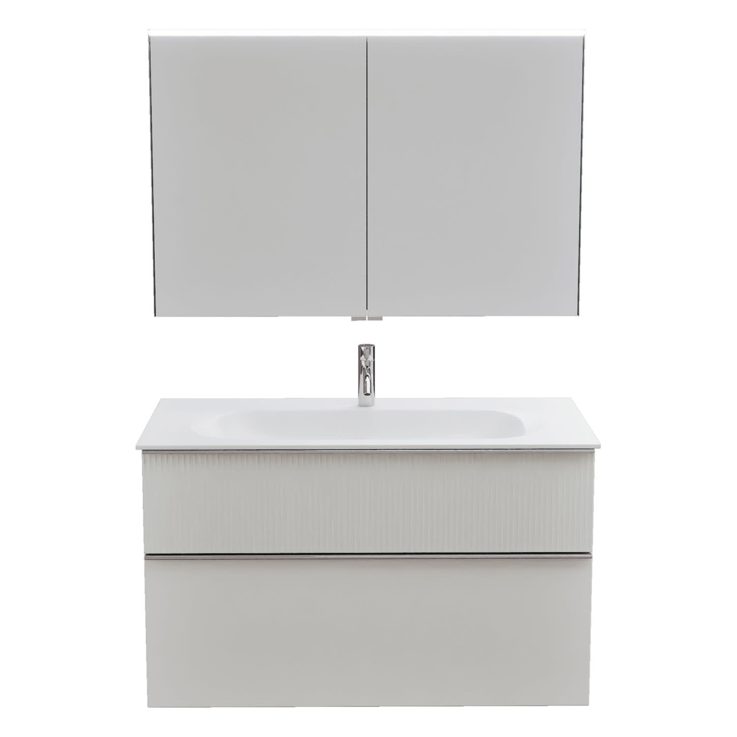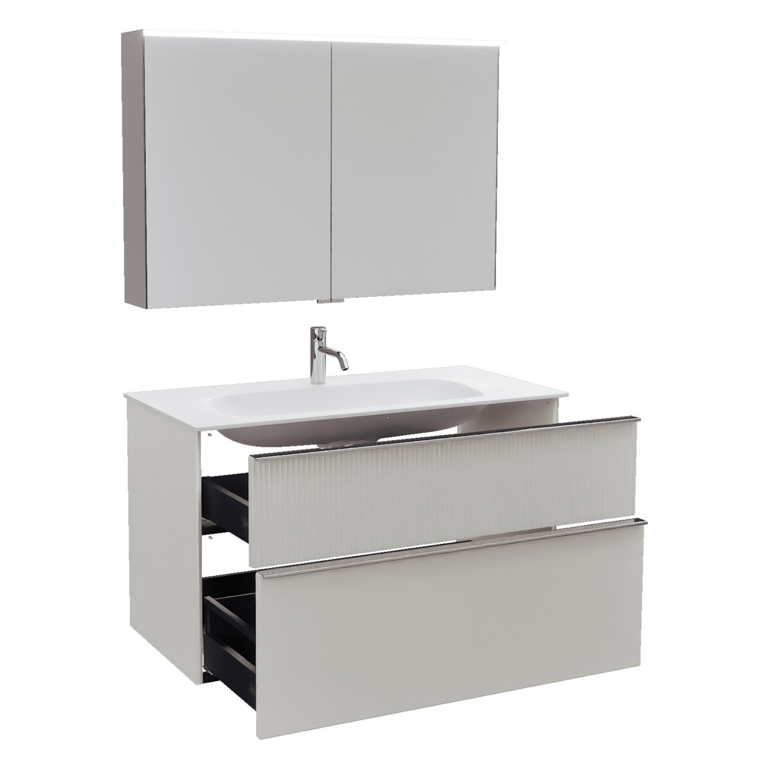 burgbad Fiumo 2.0 Badmöbelset 102 cm mit Waschtisch mit Unterschrank mit Griff G0146 und Spiegelschrank