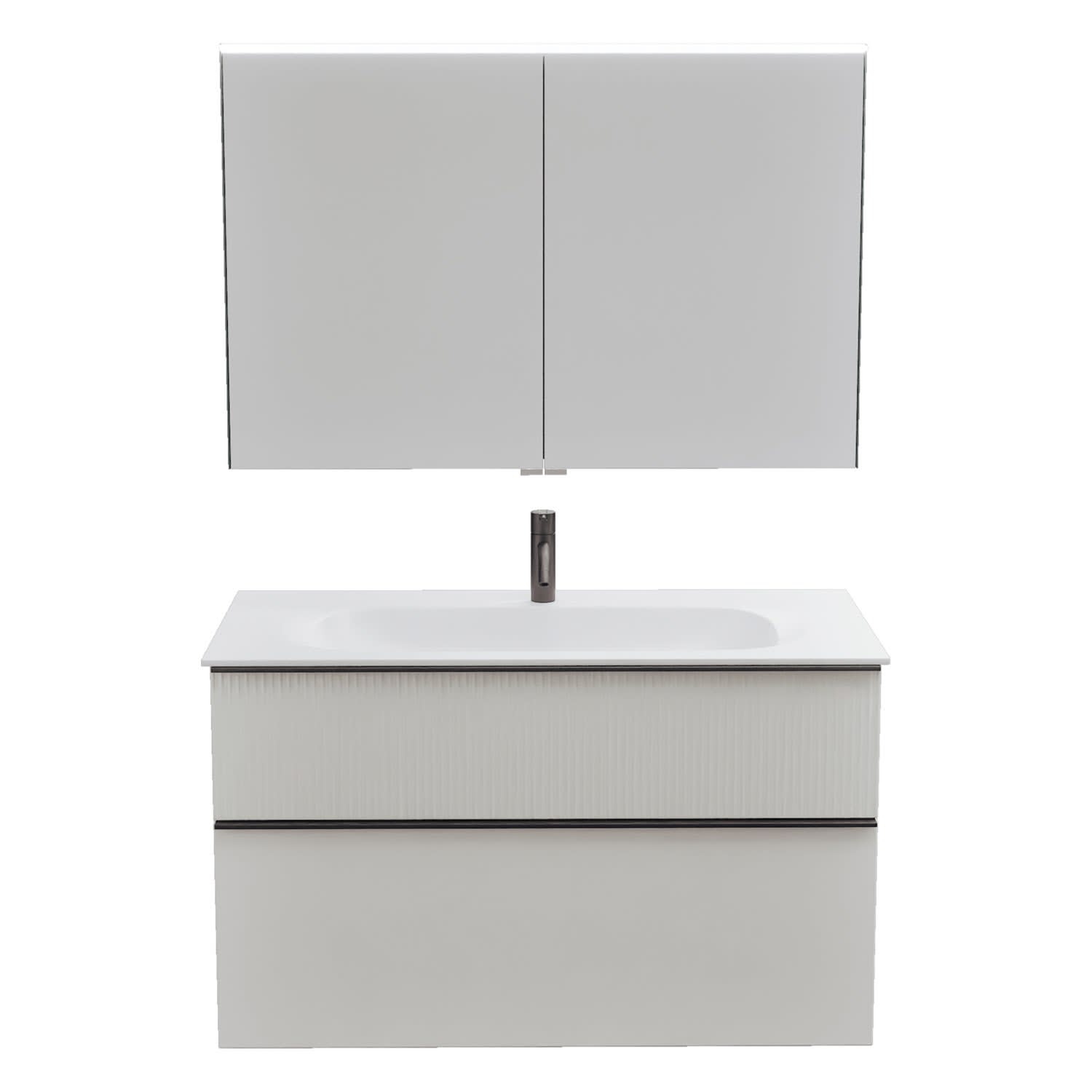 burgbad Fiumo 2.0 Badmöbelset 102 cm mit Waschtisch mit Unterschrank mit Griff G0200 und Spiegelschrank