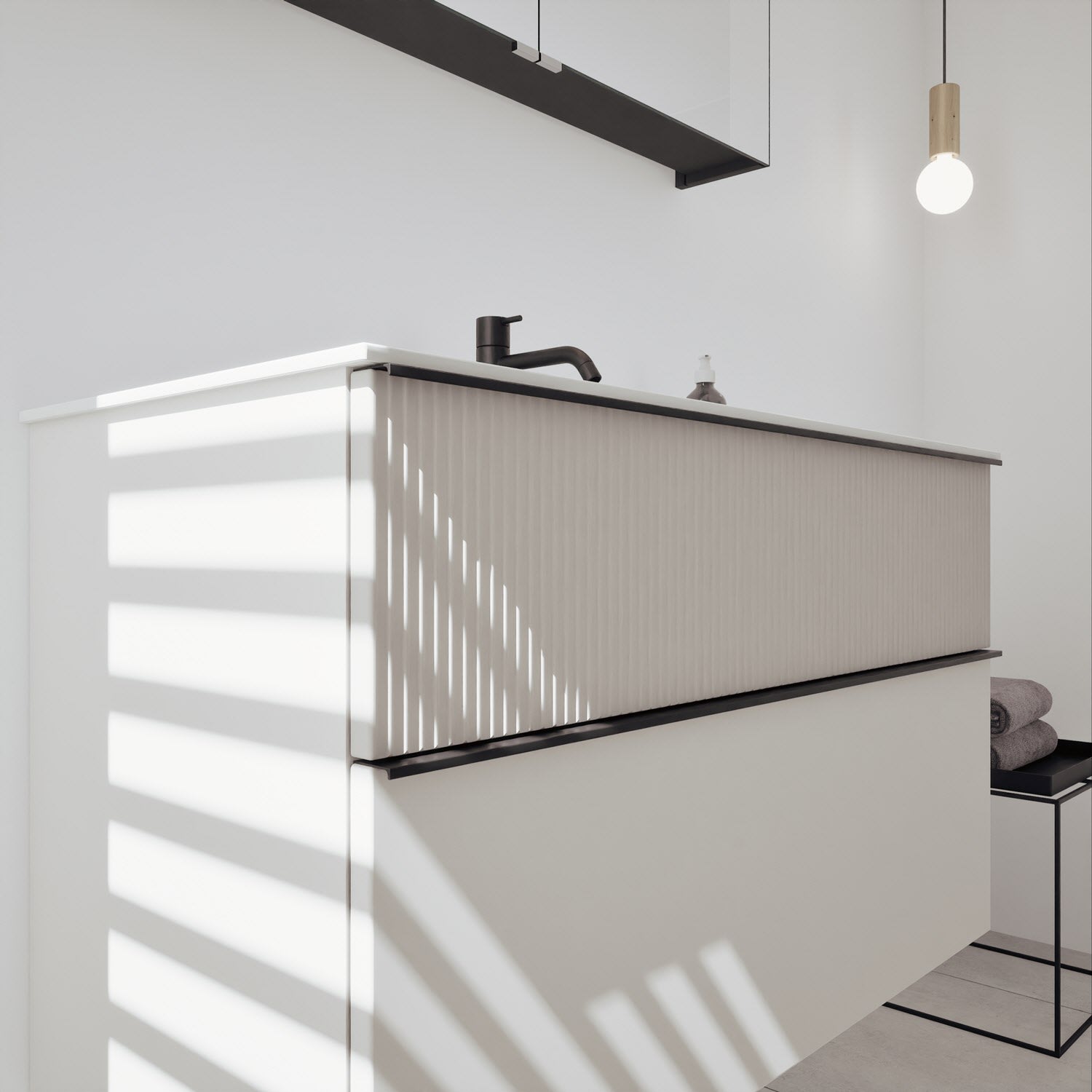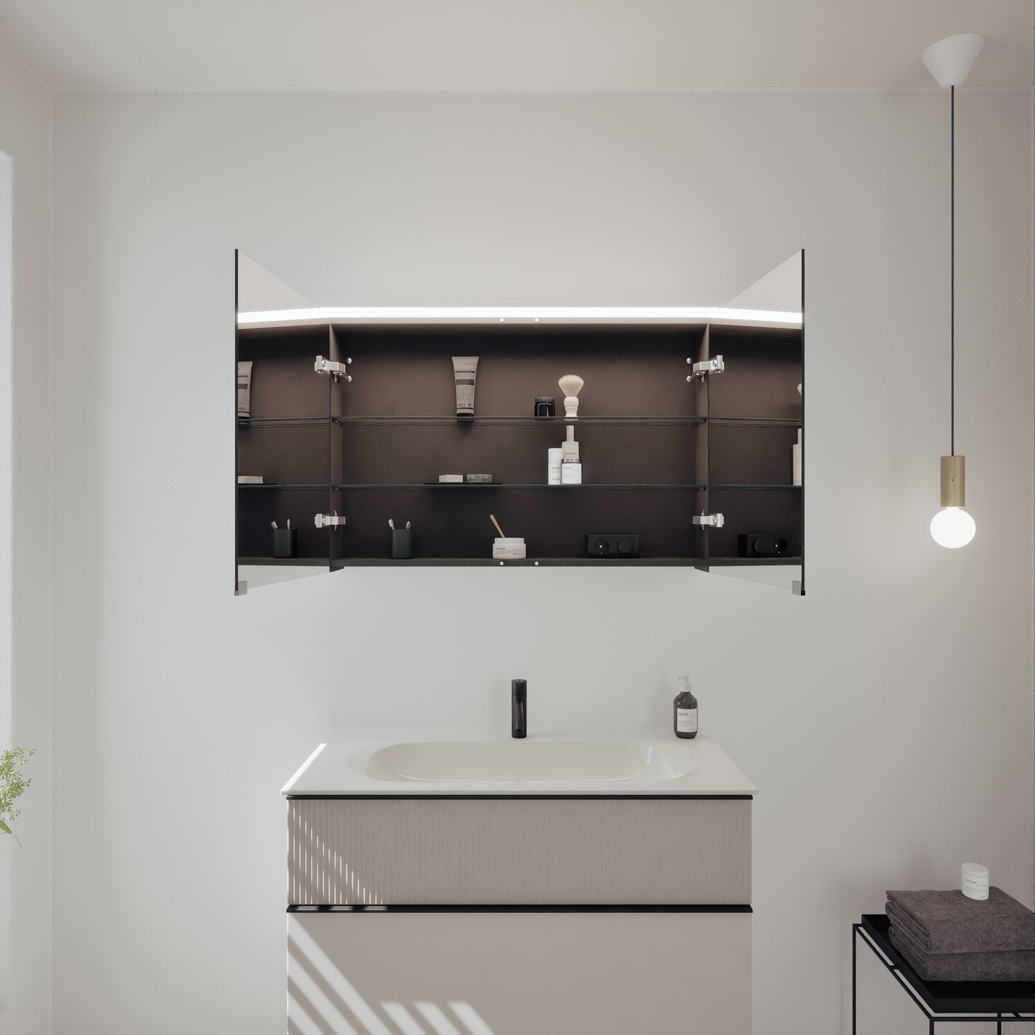 - Spiegelschrank, Waschtischunterschrank, Waschtisch, burgbad cleanFlow, Befestigung außer Stockschrauben