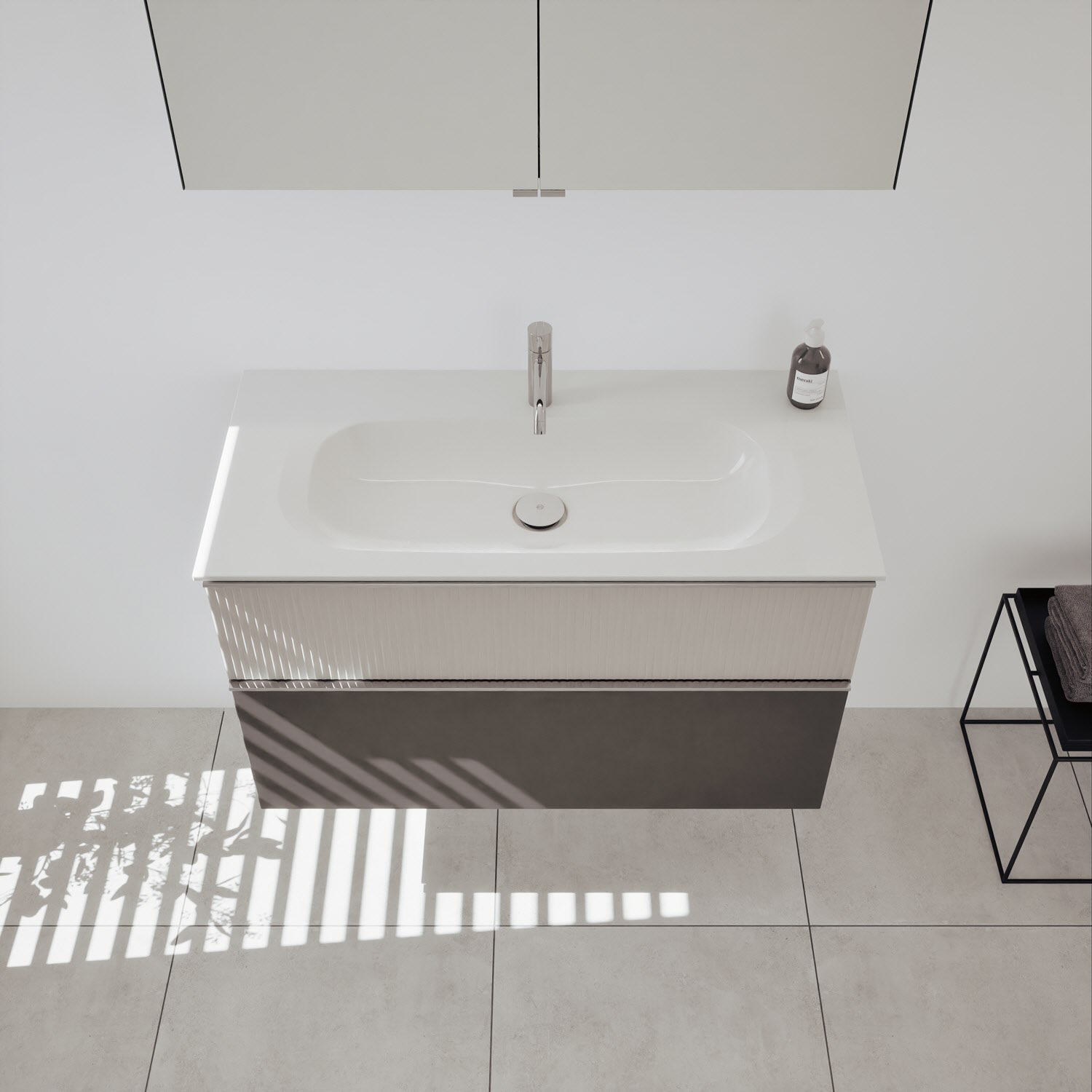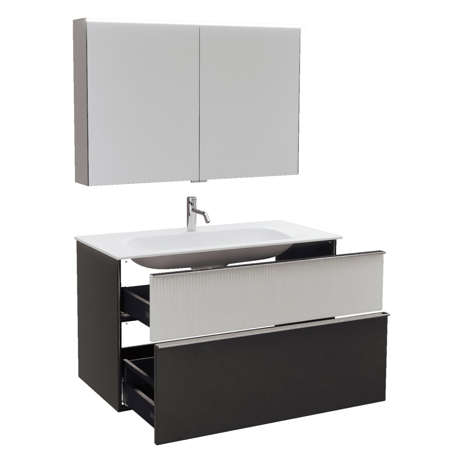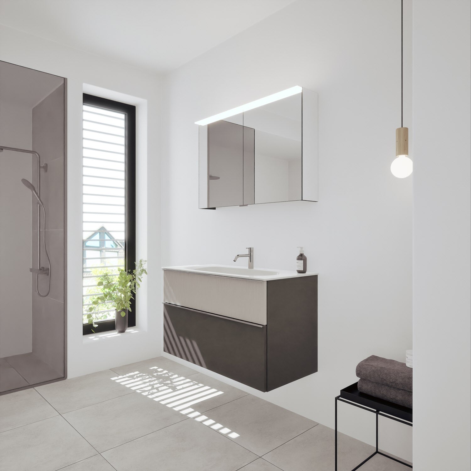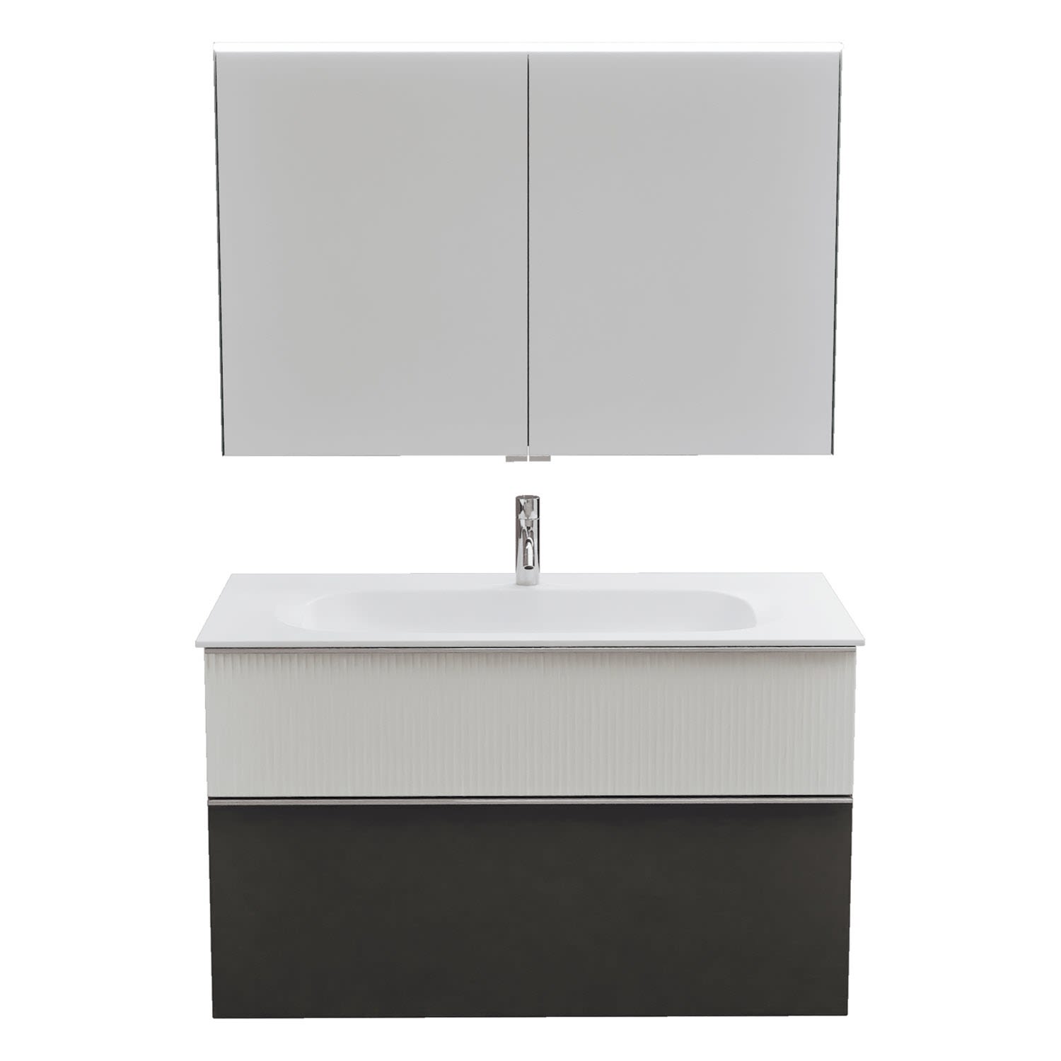 burgbad Fiumo 2.0 Badmöbelset 102 cm mit Waschtisch mit Unterschrank mit Griff G0146 und Spiegelschrank