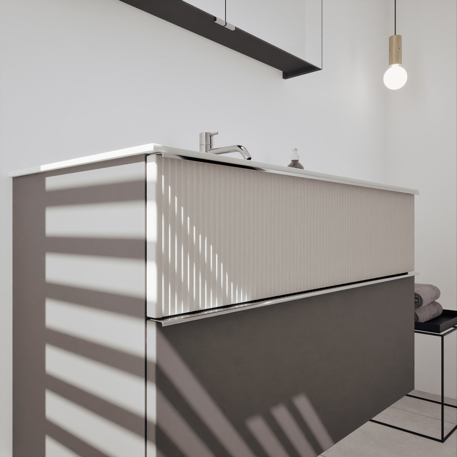 - Spiegelschrank, Waschtischunterschrank, Waschtisch, burgbad cleanFlow, Befestigung außer Stockschrauben